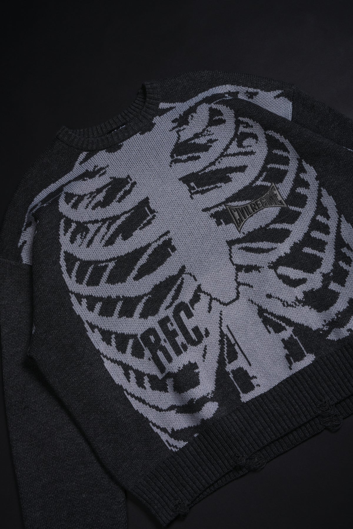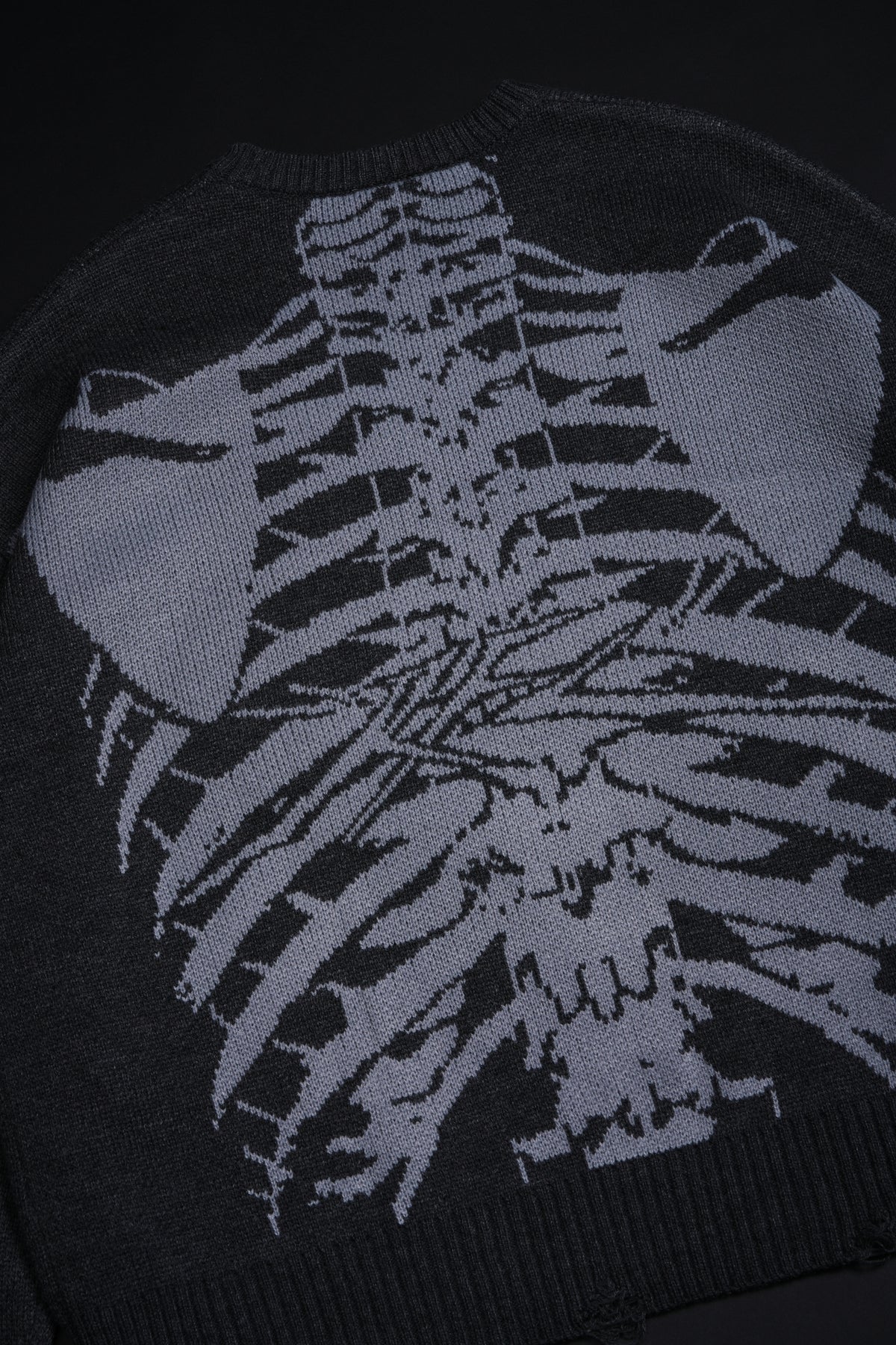 I Bite Cable Distressed Knit Sweater in Charcoal