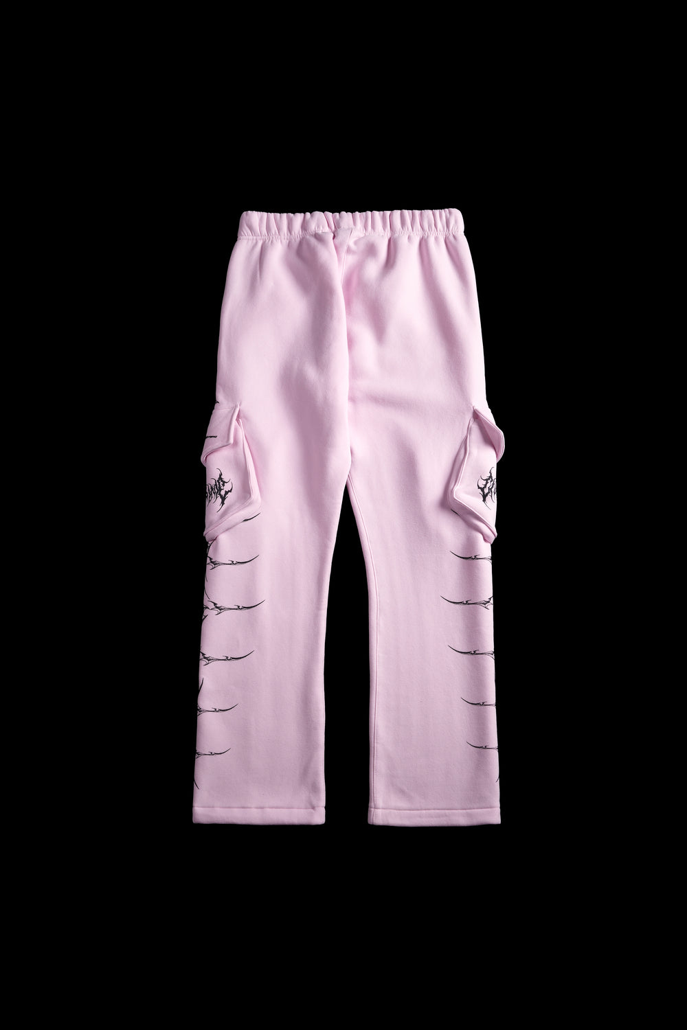 Roses Forever Wide Leg Cargo Fleece Pants in Baby Pink