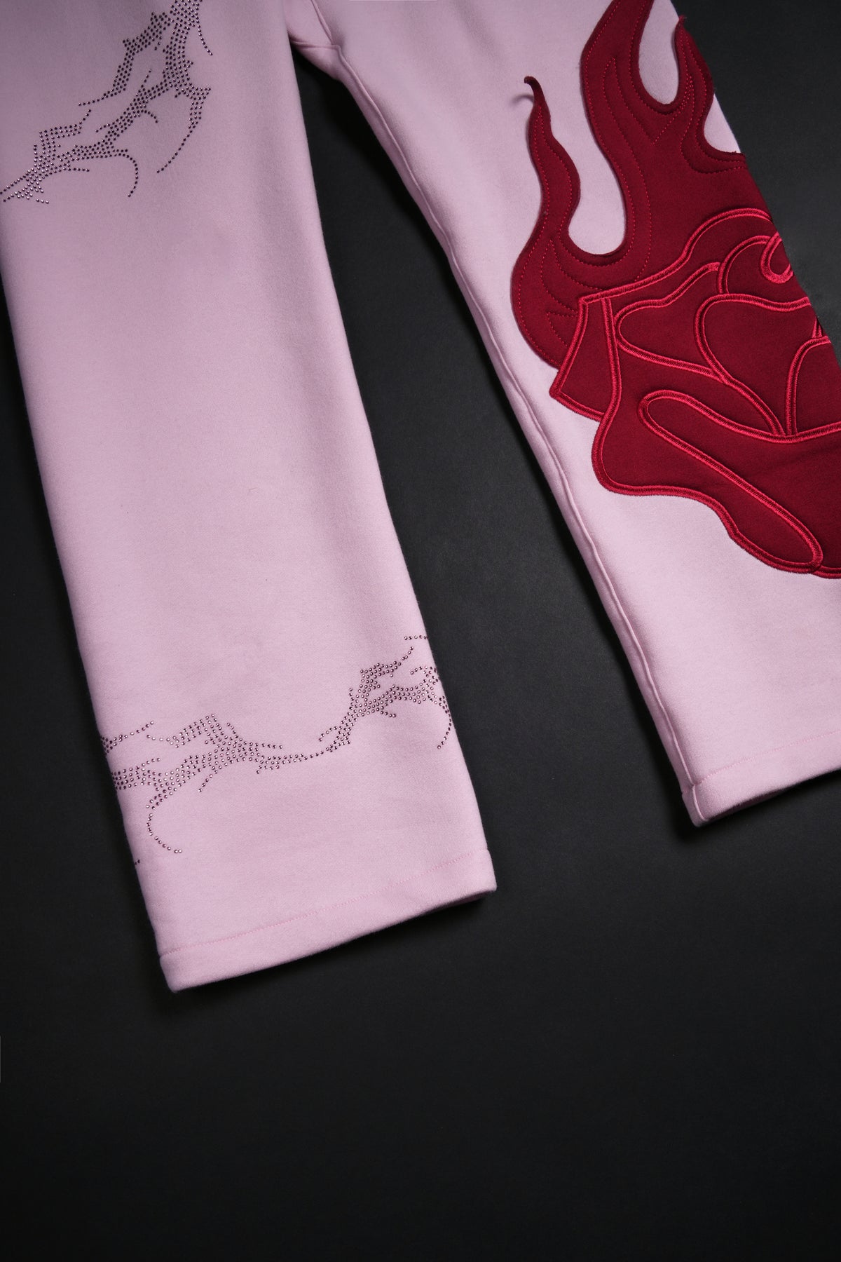 Bad Bih Rhinestone Wide Leg Fleece Pants in Baby Pink