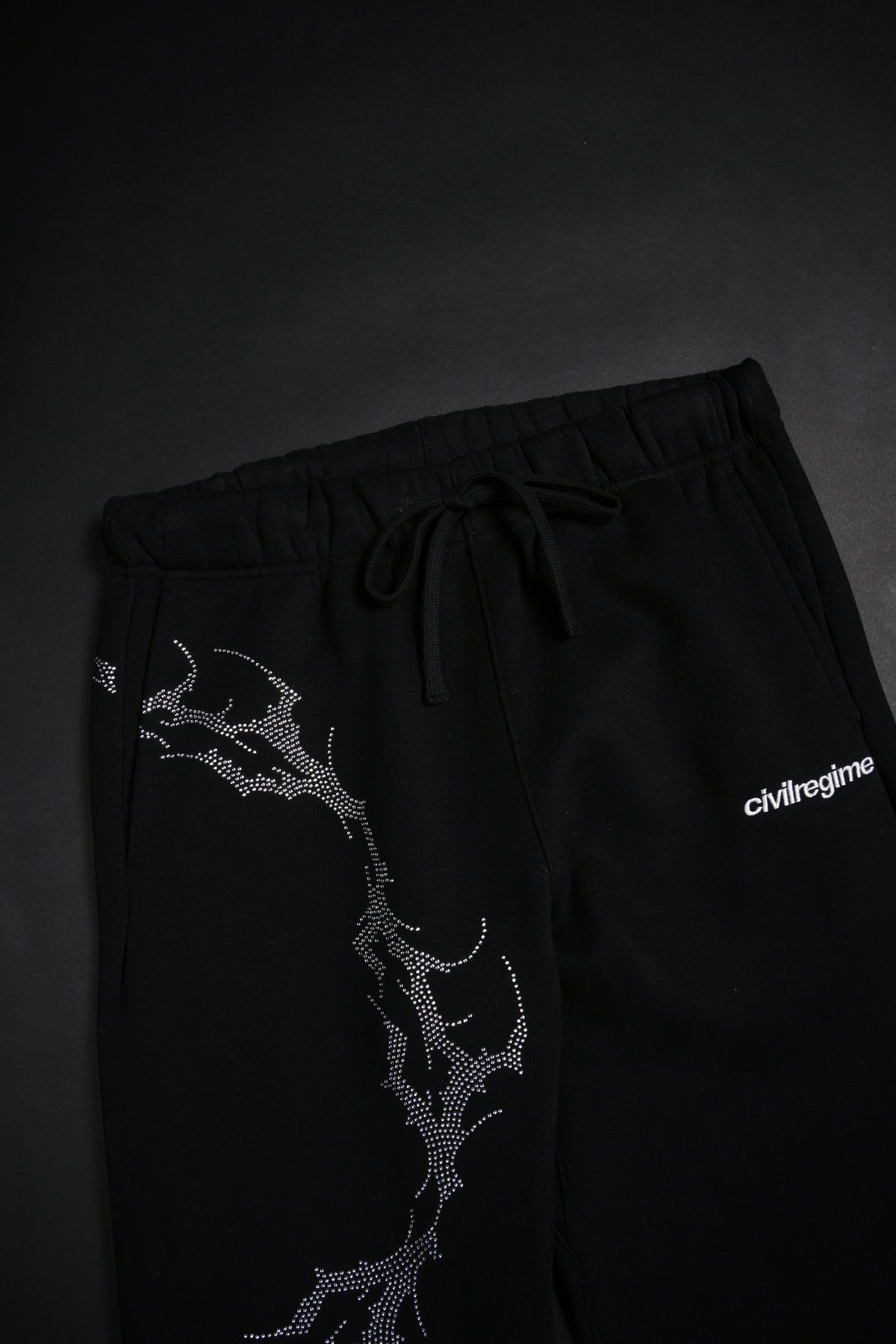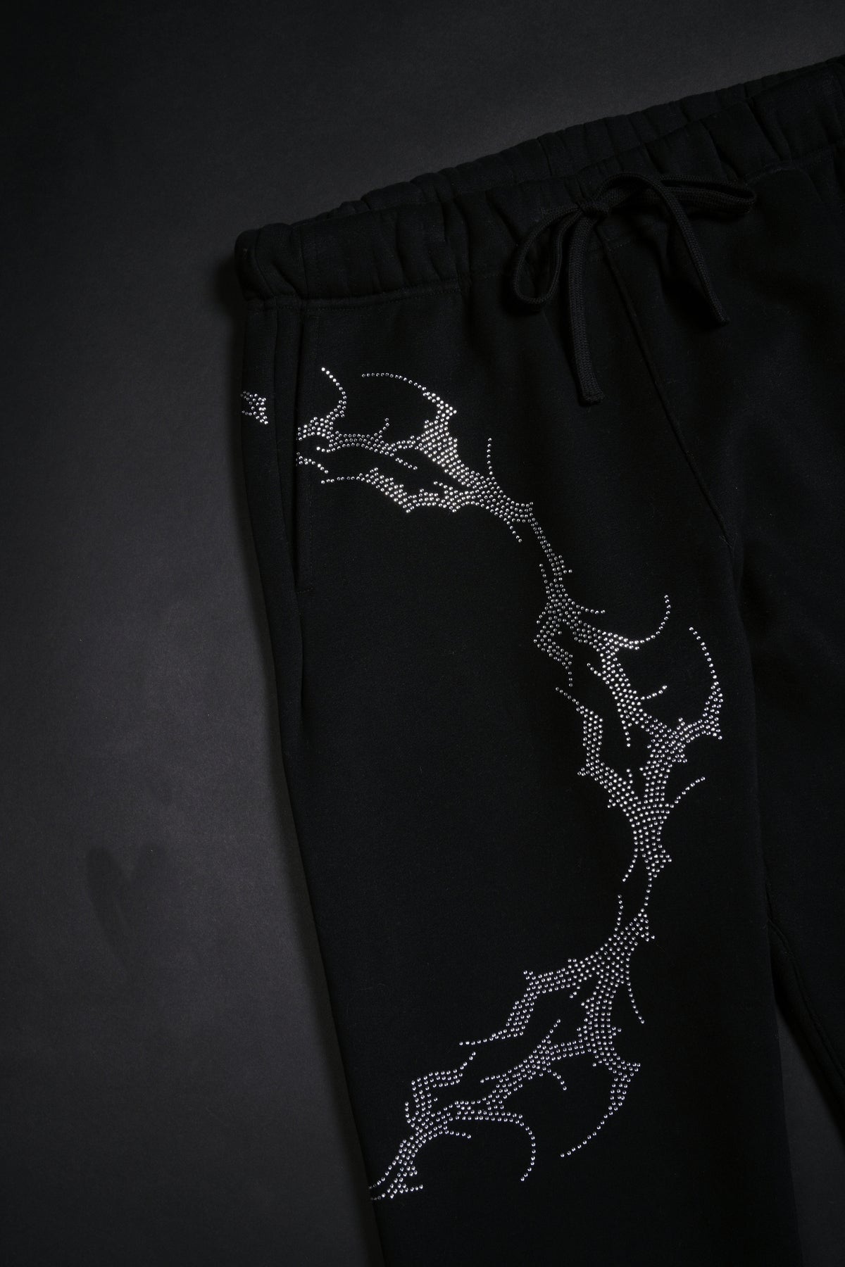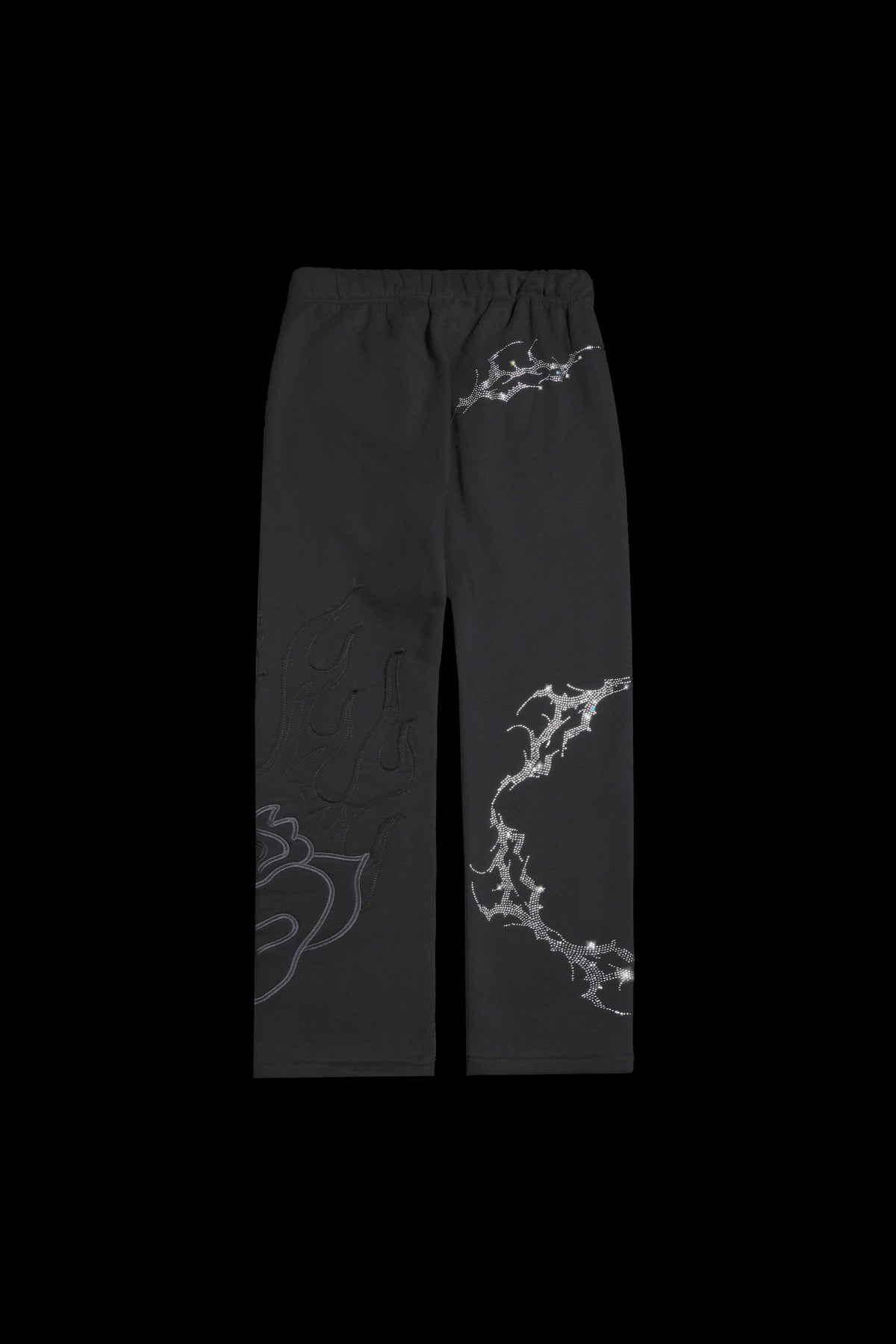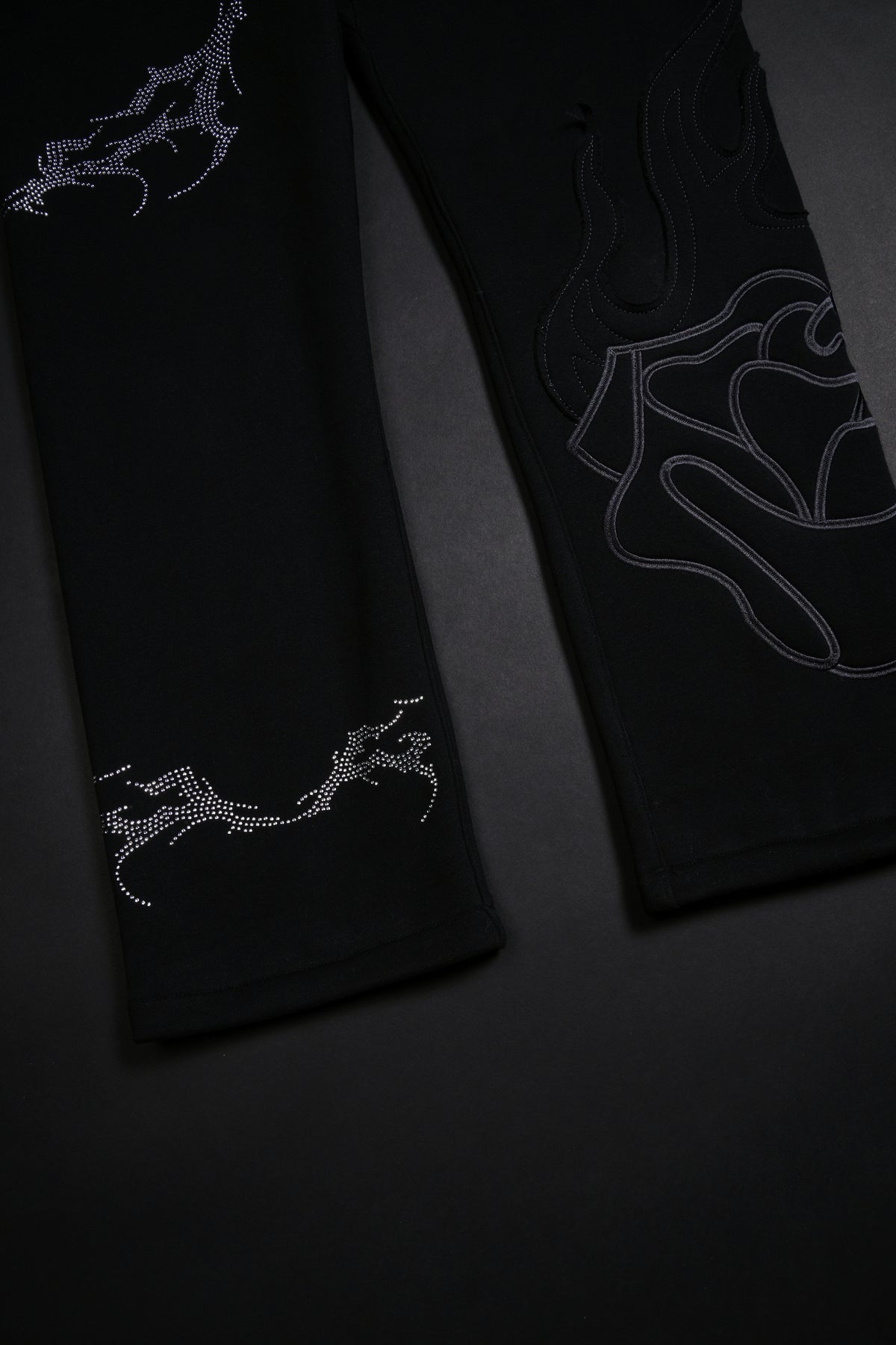 Bad Bih Rhinestone Wide Leg Fleece Pants in Black