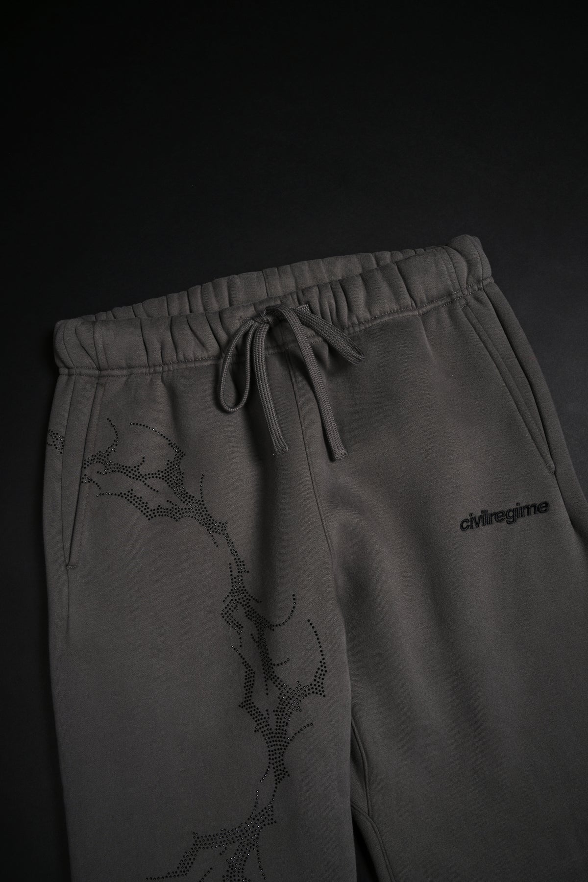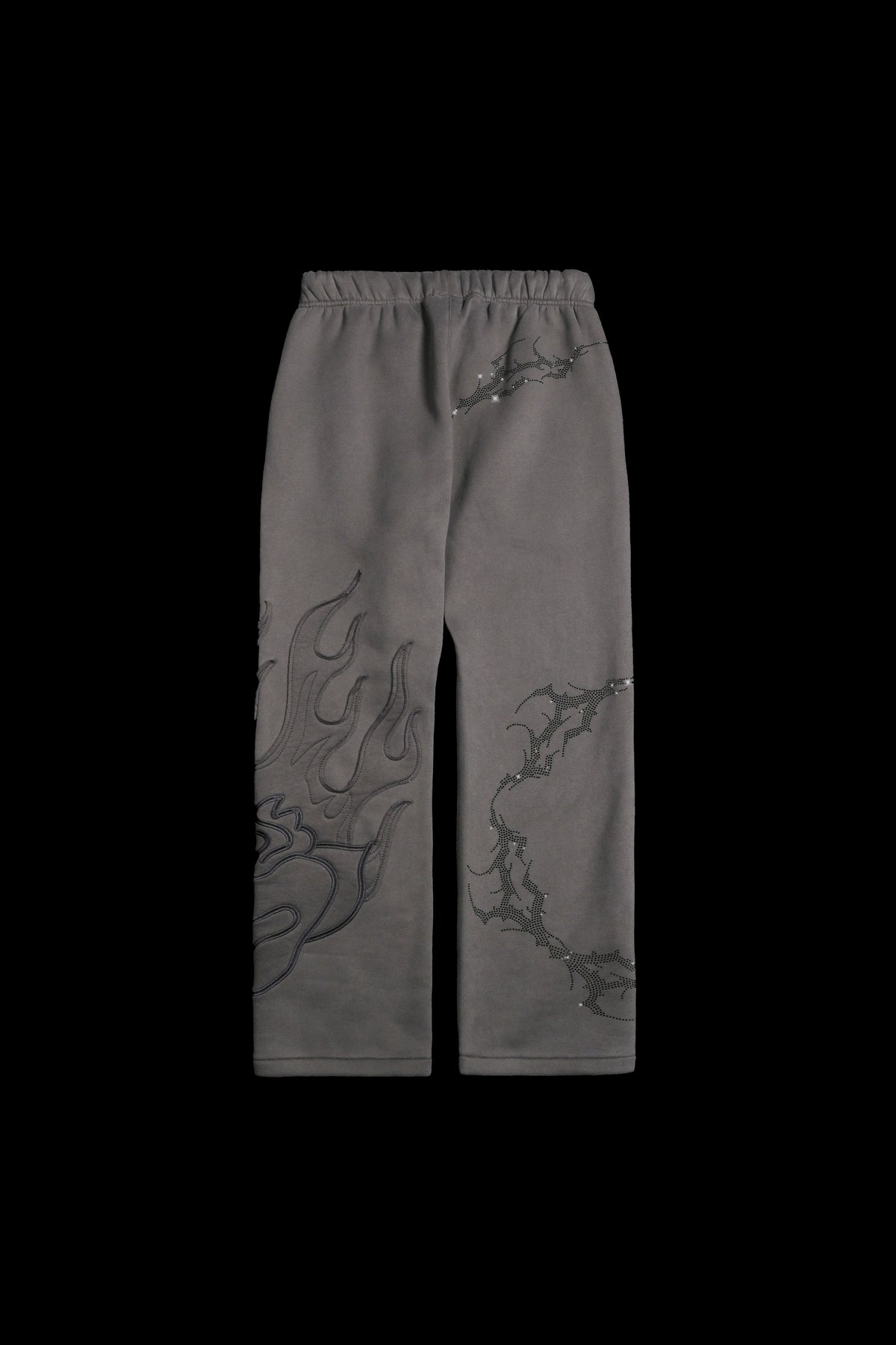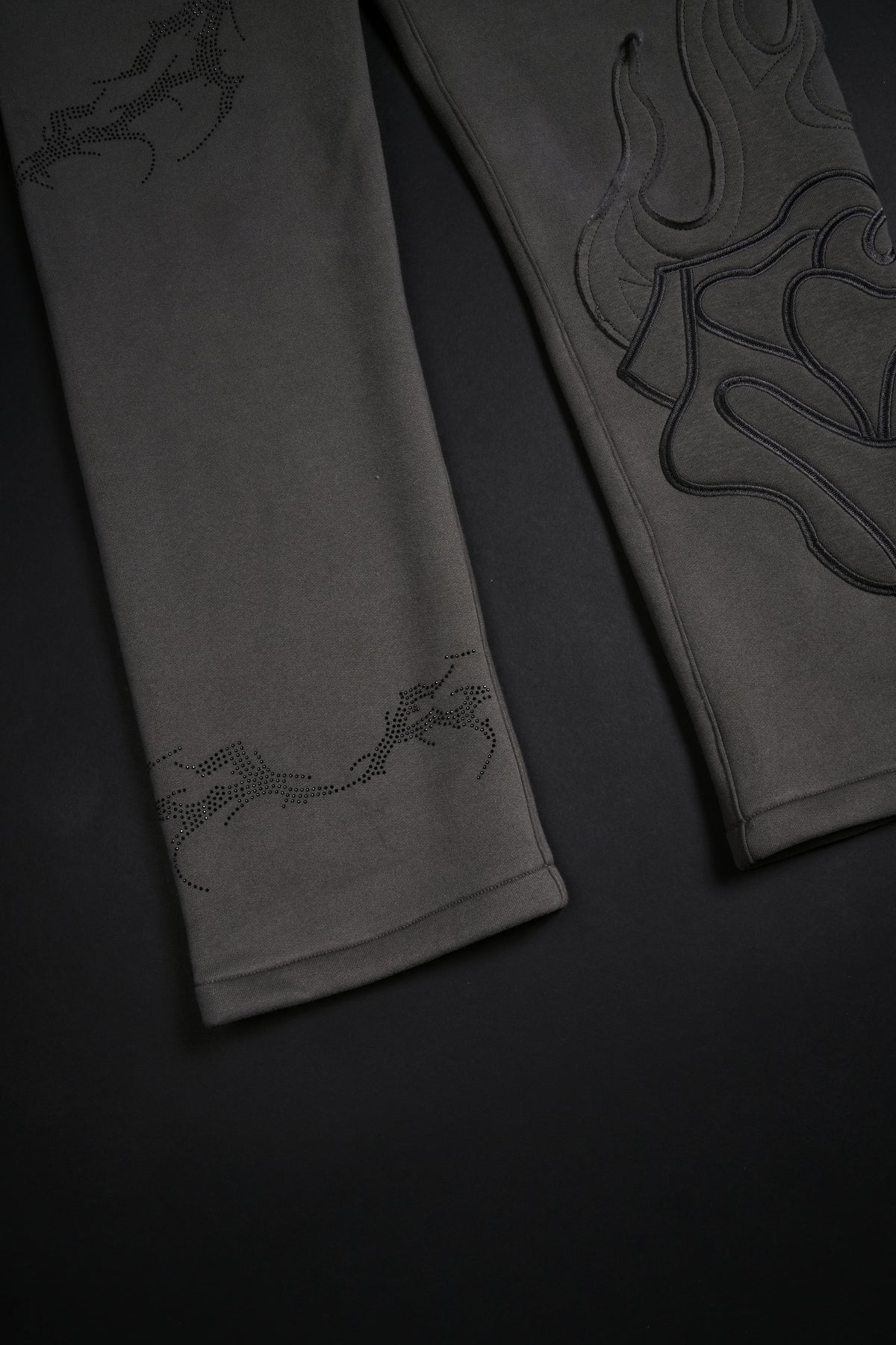 Bad Bih Rhinestone Wide Leg Fleece Pants in Vintage Ashes