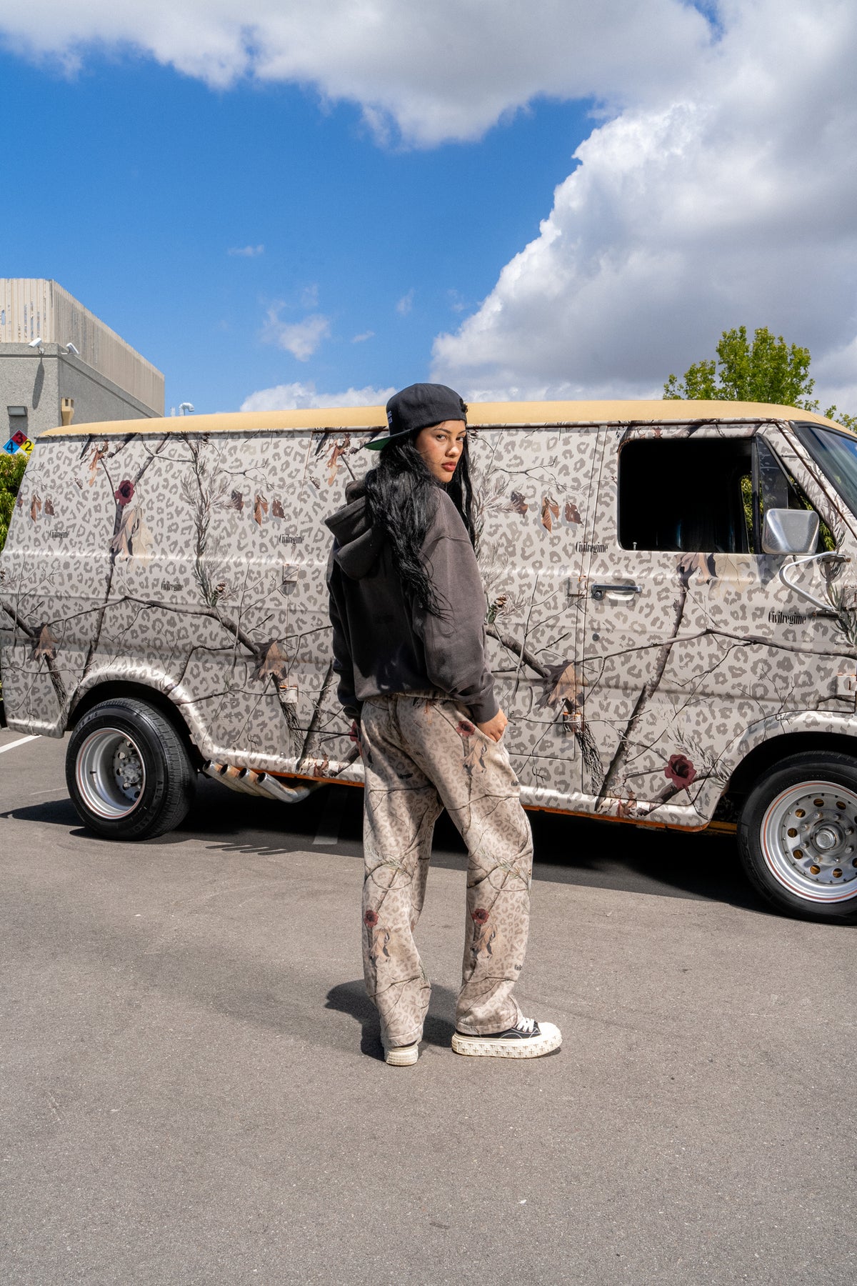 Concrete Sin Wide Leg Fleece Pants in Sun Wash Real Leopard Camo