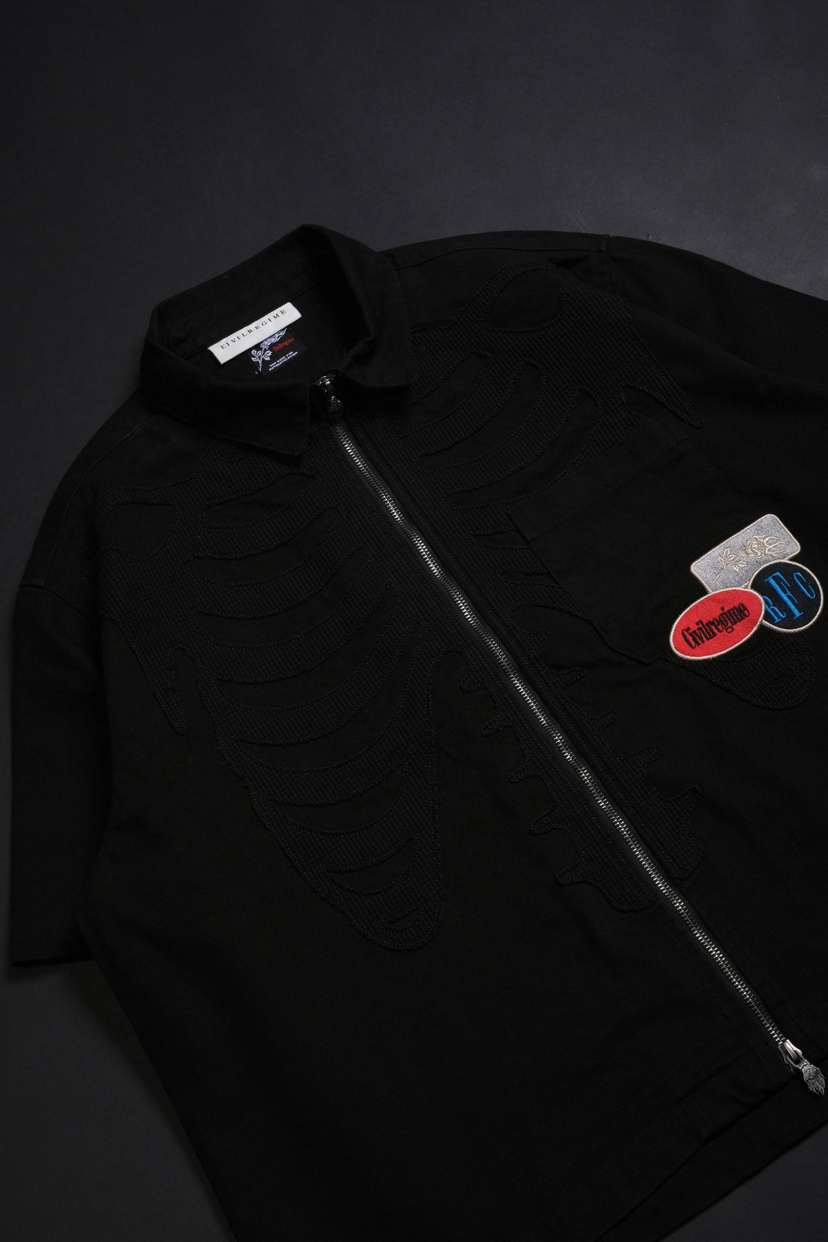 CENTER ZIPPER UP WITH CUSTOM ROSE PULLER, FRONT APPLIQUE AND PATCHES