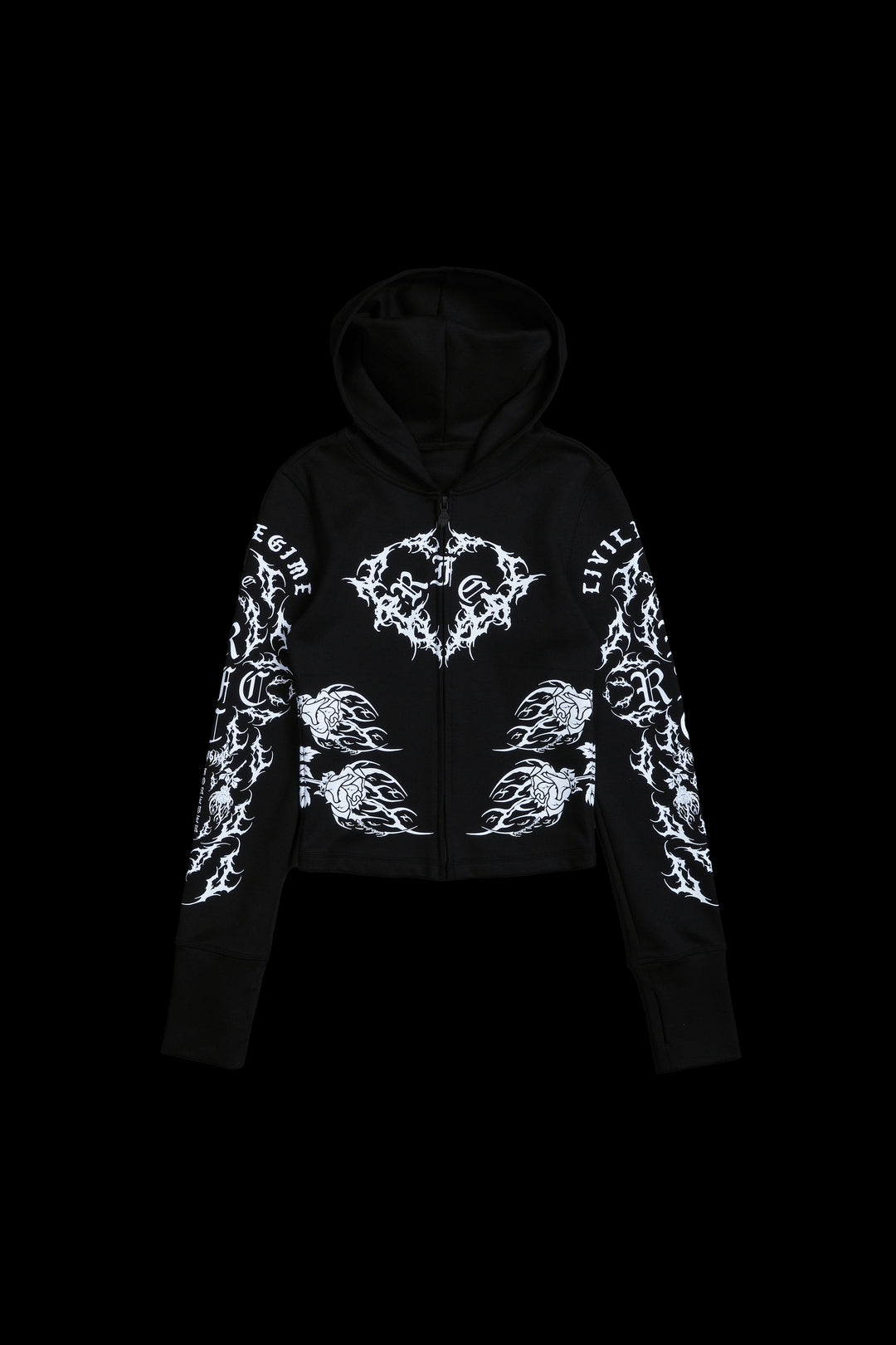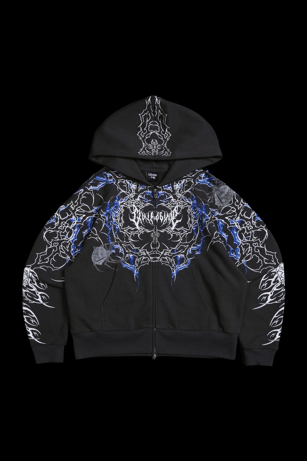 Corpse Flame Outliers Distressed Zip Up Hoodie in Charcoal