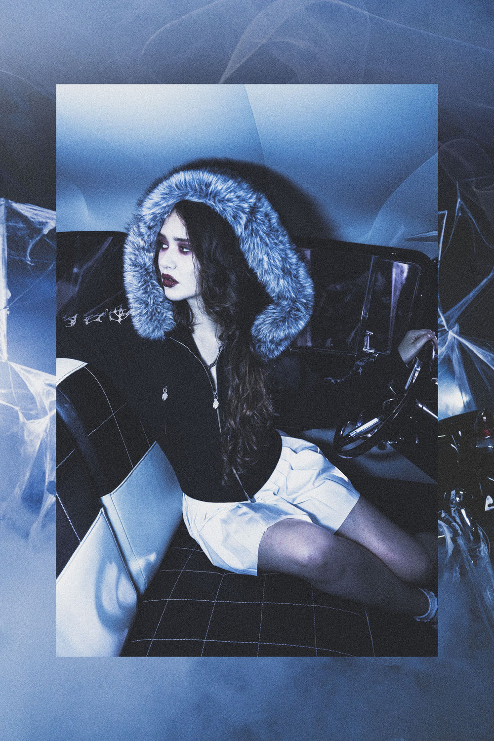 Lover's Lament Angel Cropped Fur Zip Up Hoodie in Black