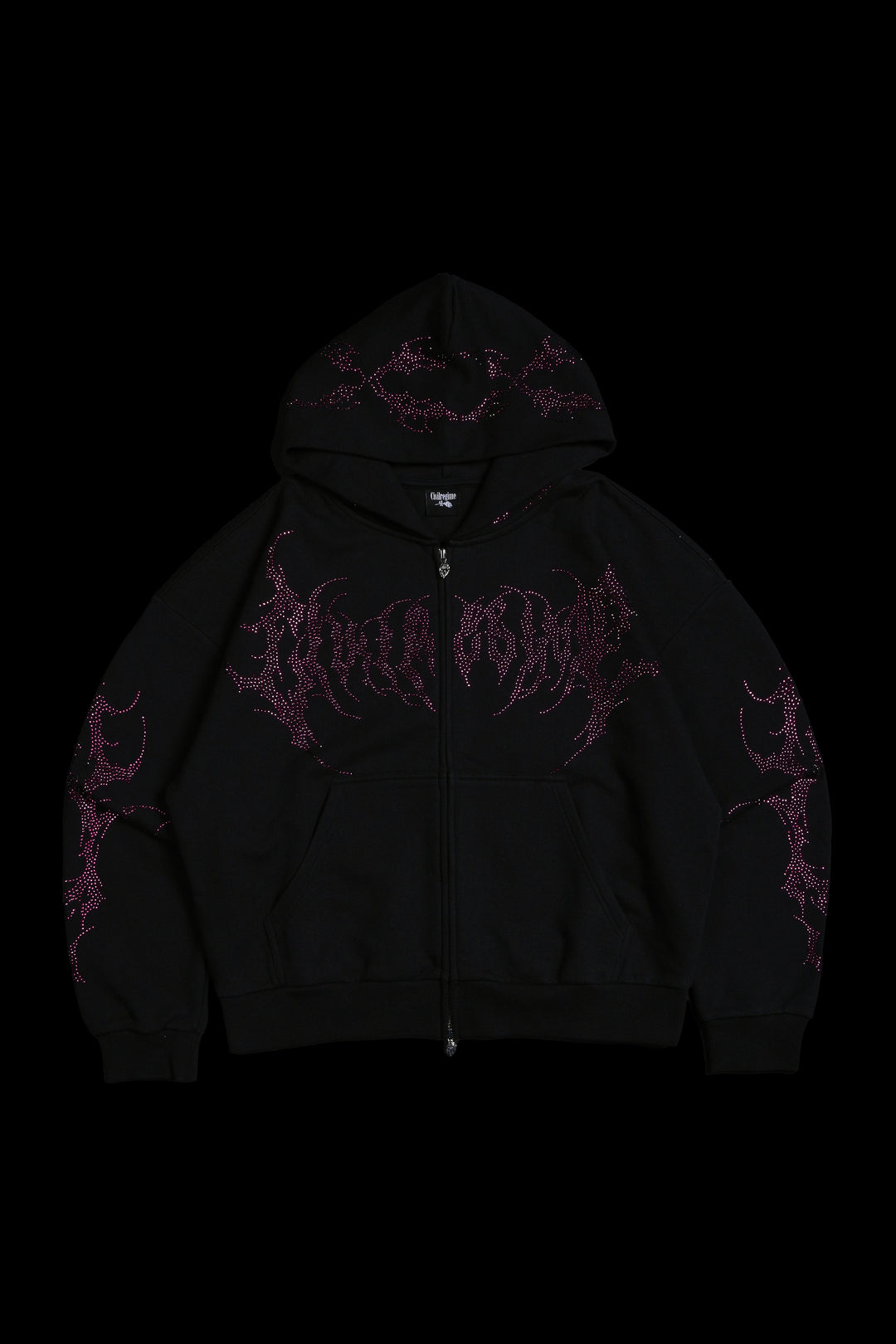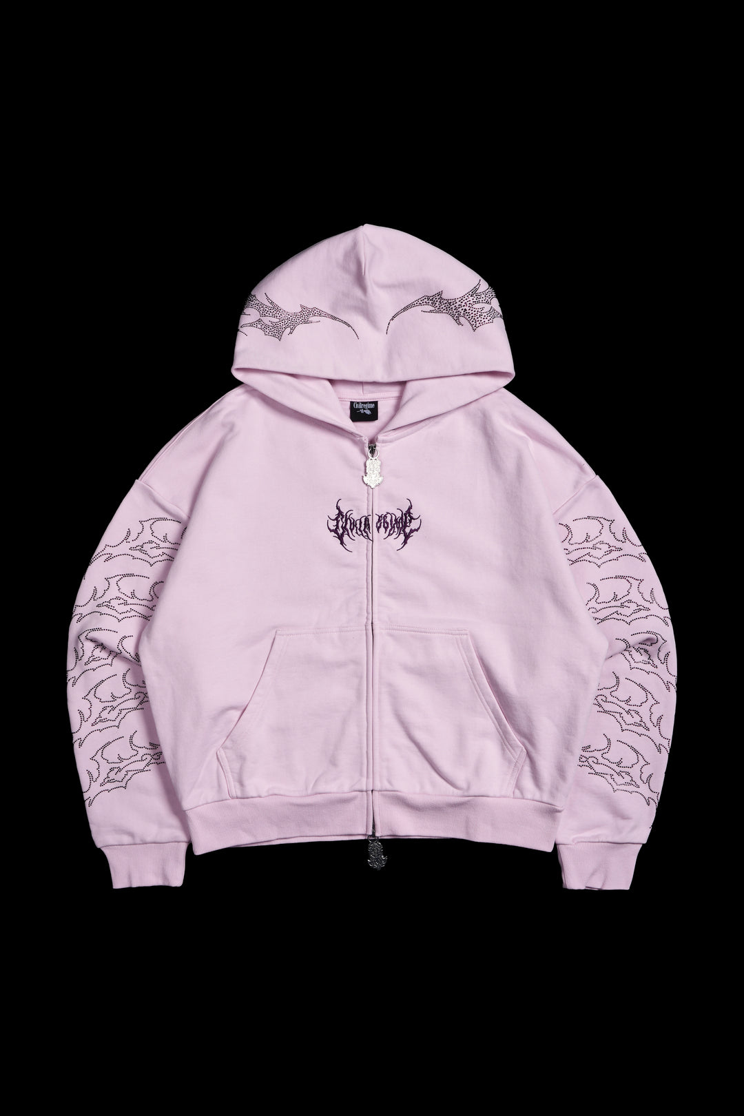 Surging Through The Blossoms Outliers Distressed Zip Up Hoodie in Black/Pink