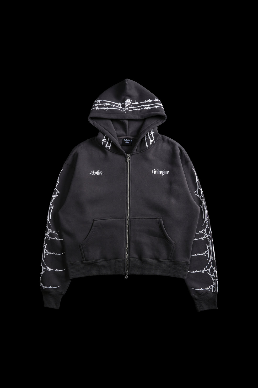 Roses In The Bloom Civil Zip Up Hoodie in Black