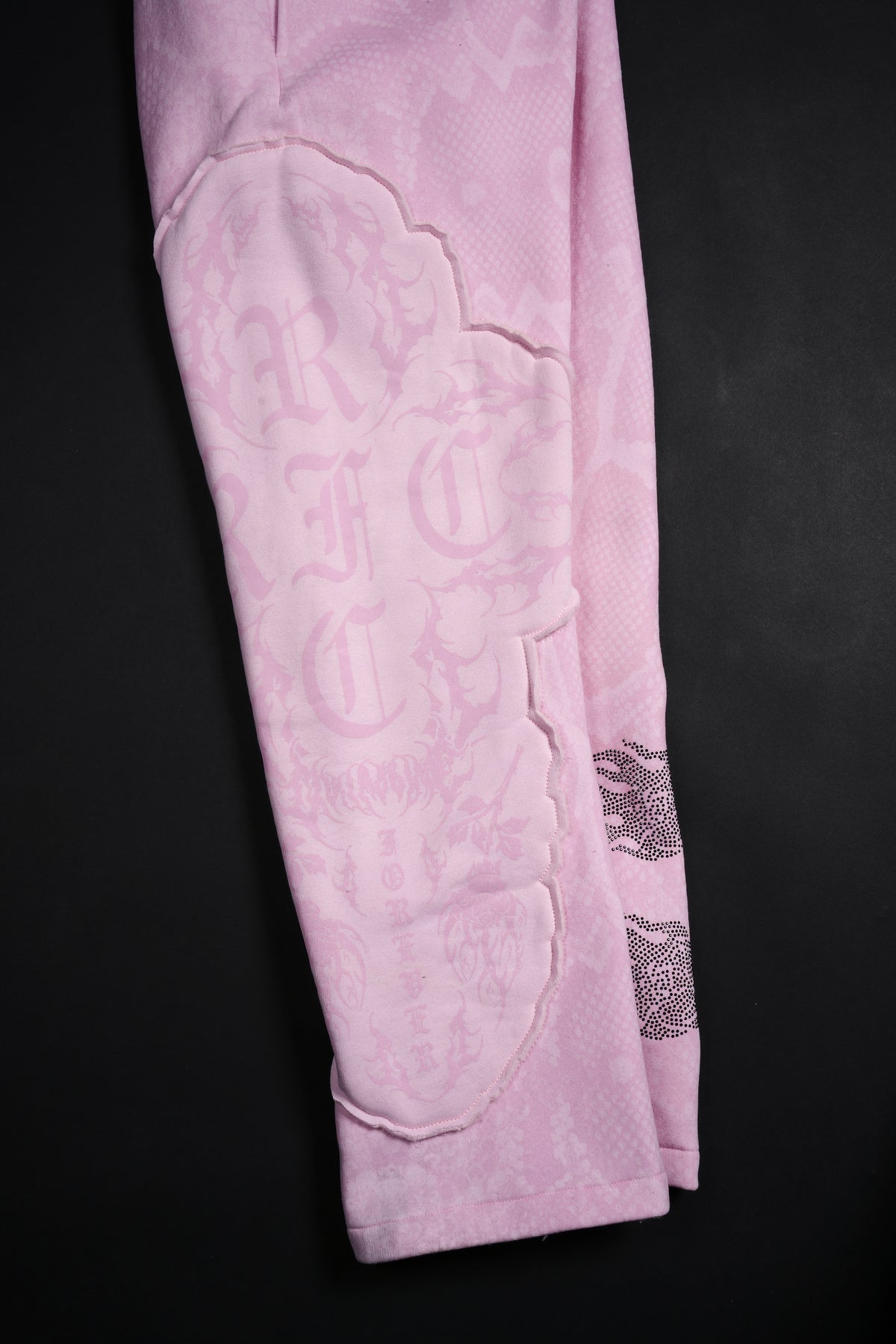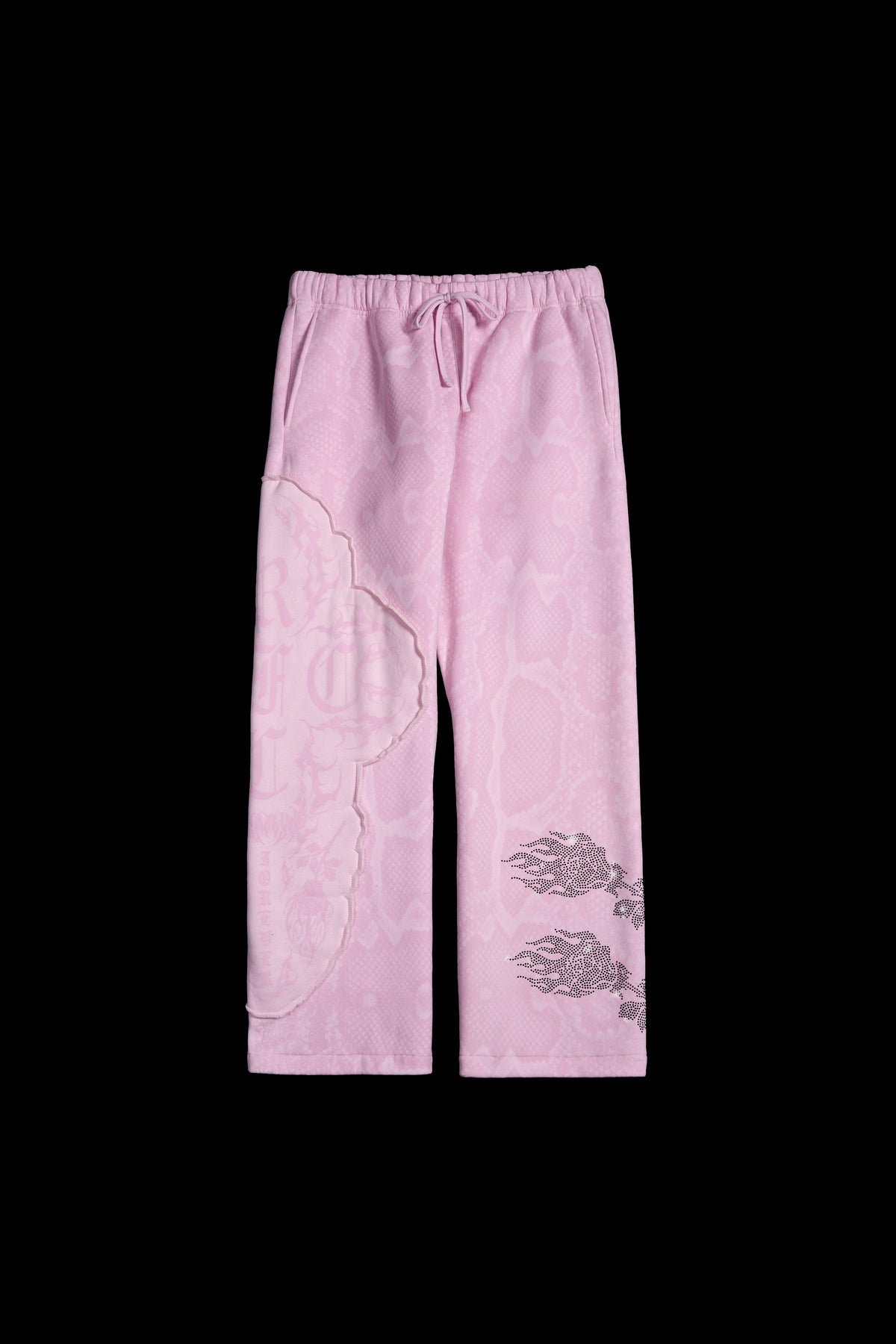 Chaos Luxe Wide Leg Fleece Pants in Baby Pink Snake
