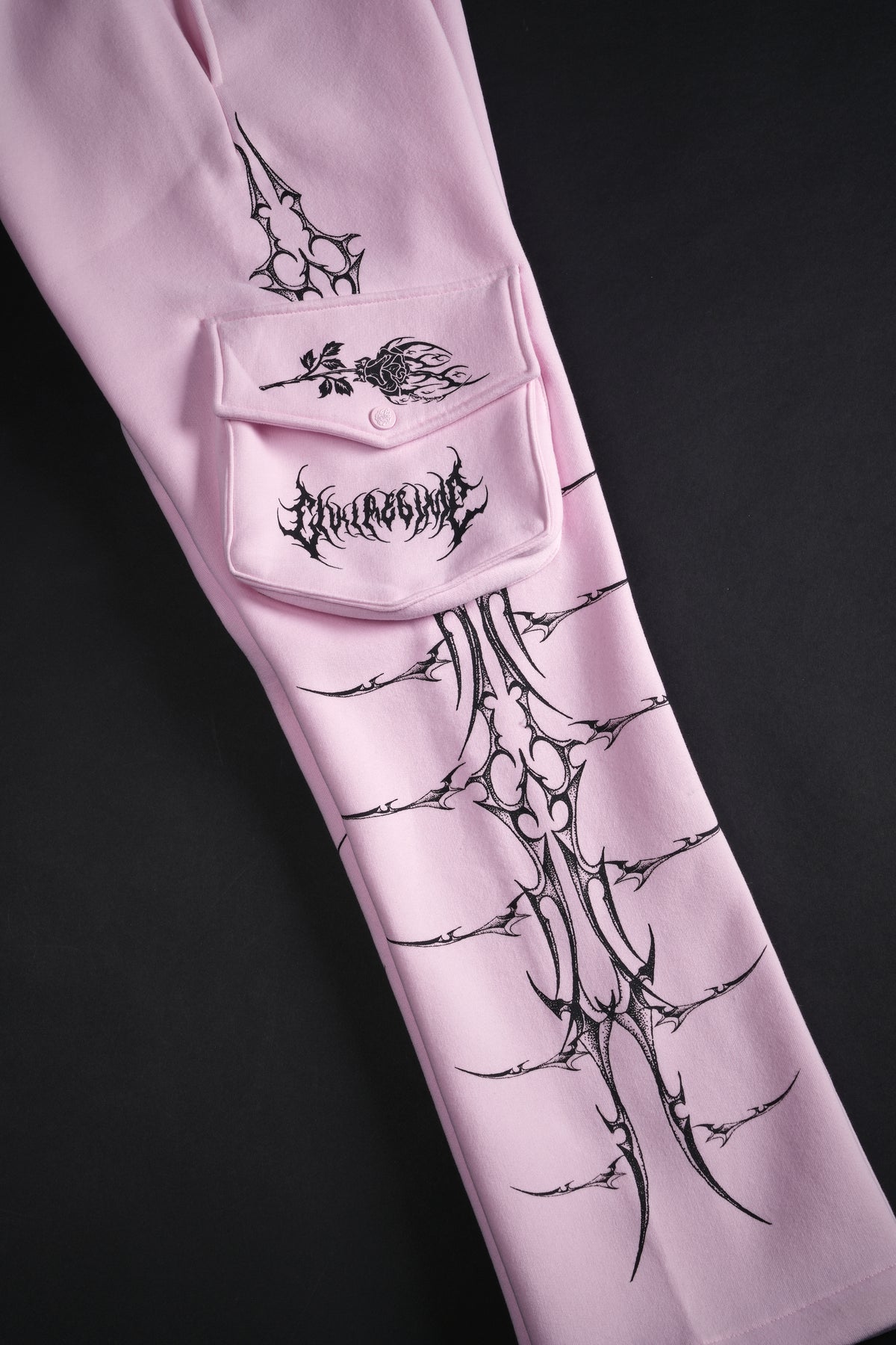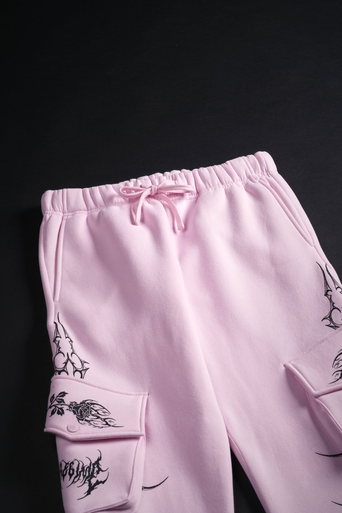 Civil Wide Leg Cargo Fleece Pants in Soft Rose