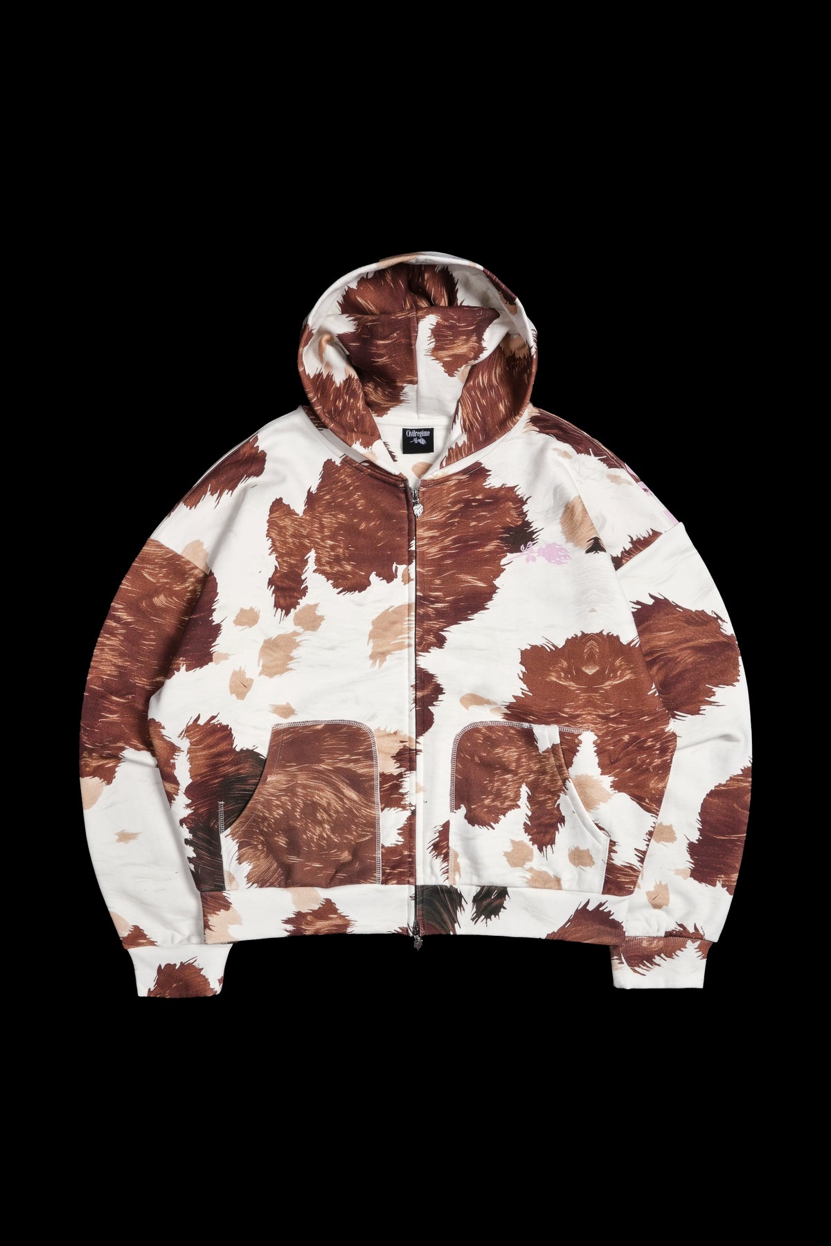 Concrete Civil Zip Up Hoodie in Cow Print
