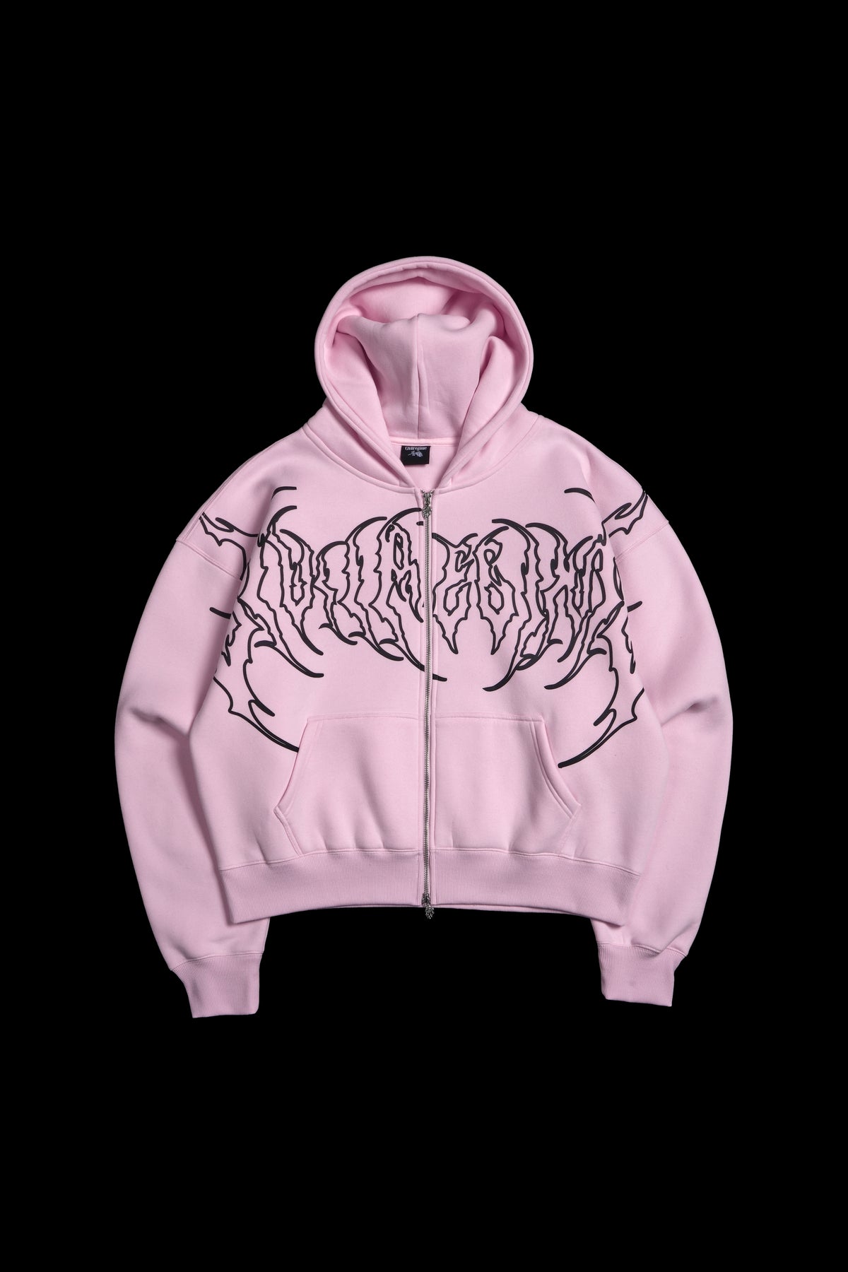 Mega Hesh Core Zip Up Hoodie in Baby Pink