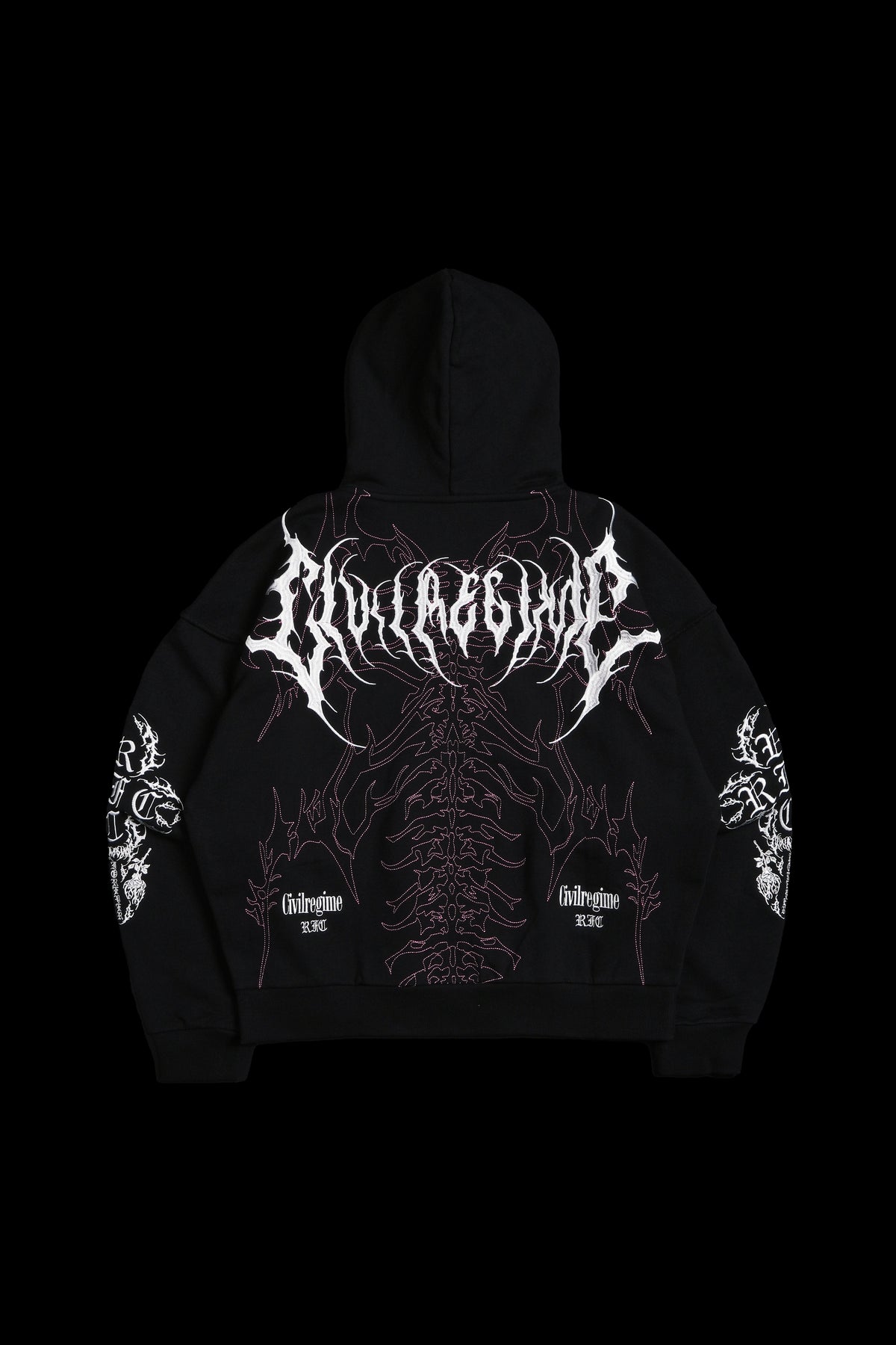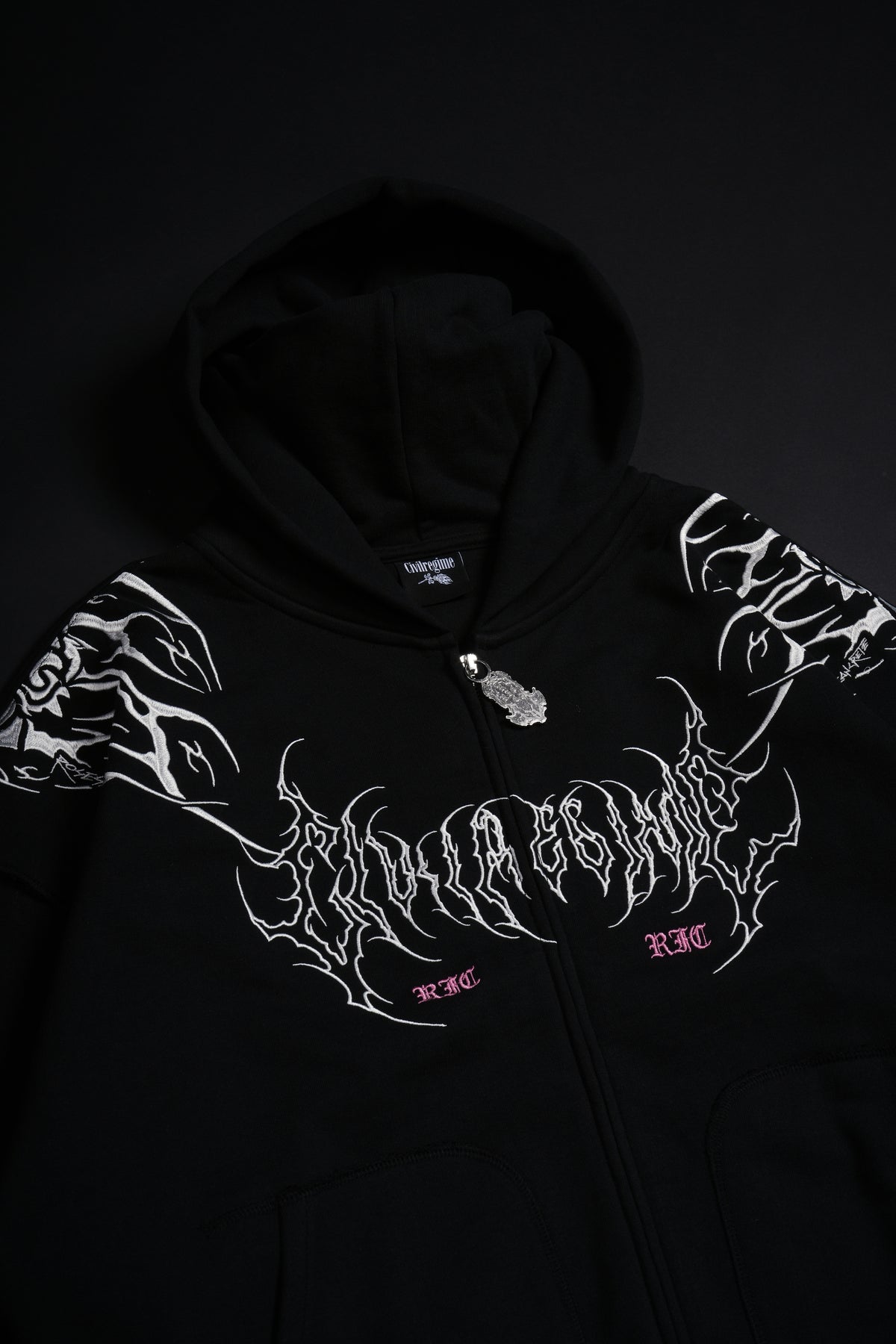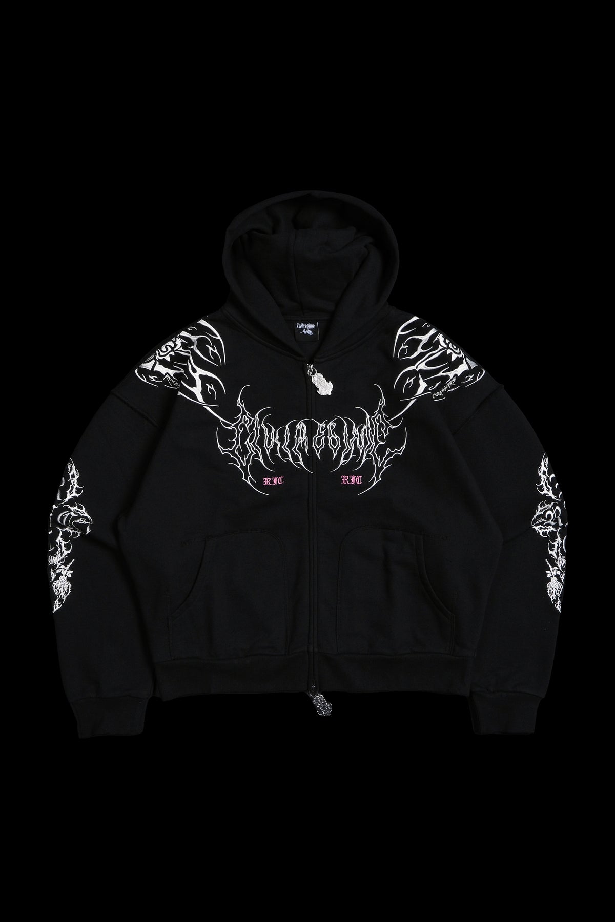 Surging Through The Blossoms Outliers Distressed Zip Up Hoodie in Blac
