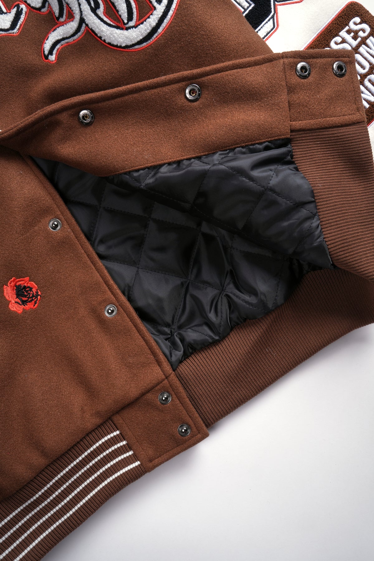 Rose Garden Letterman Jacket in Butter/Reaper Brown