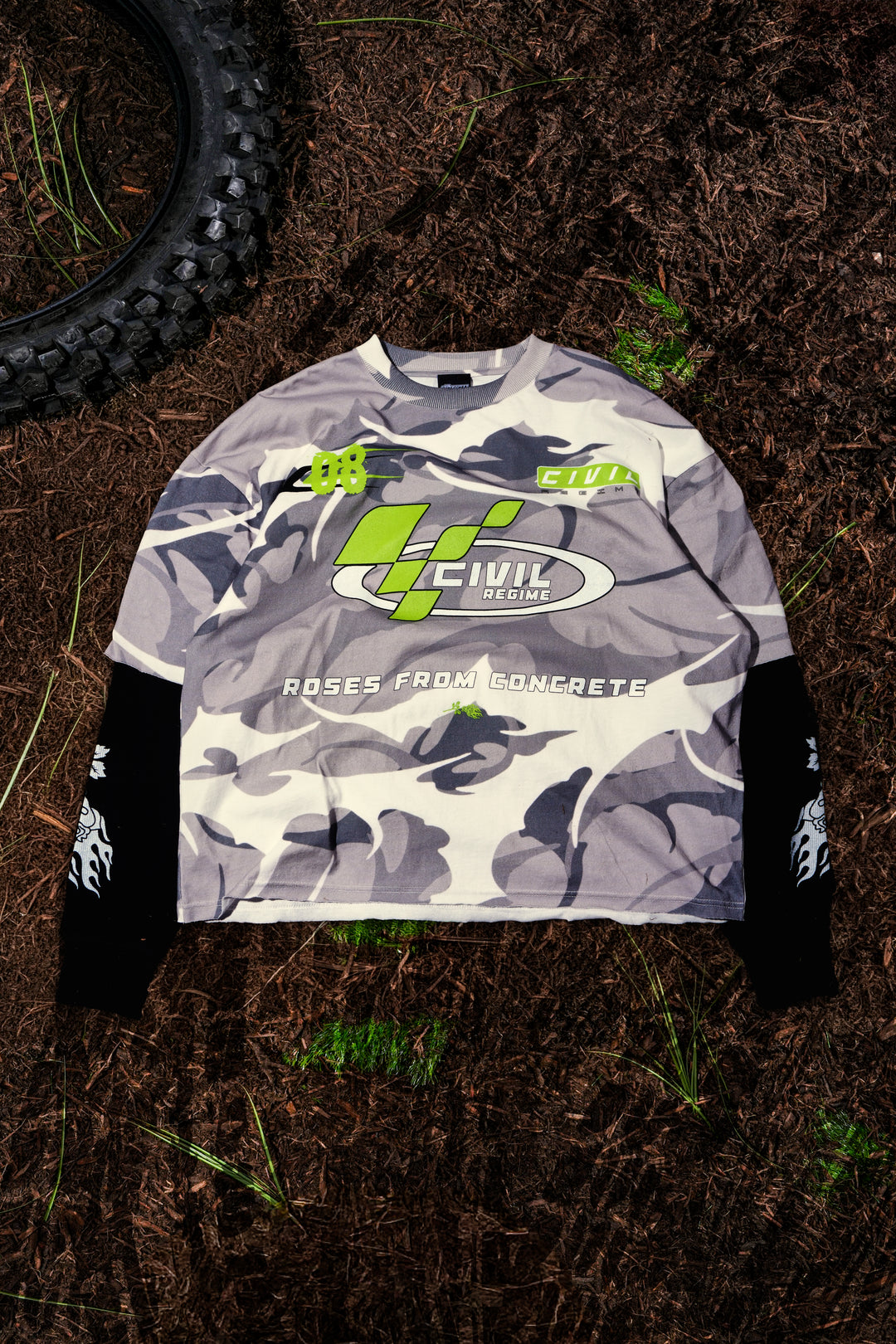 Race Out L/S Moto Jersey in Gray/Blue Gradient