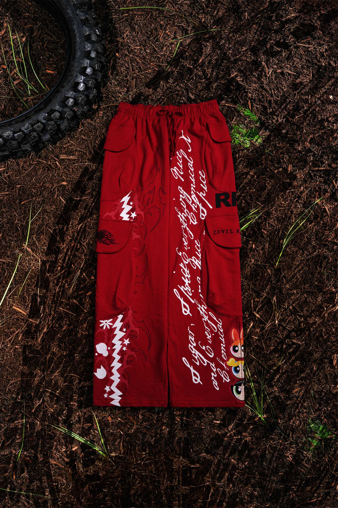 Trio Vault Cargo Baggy Pants in Equestrian Red