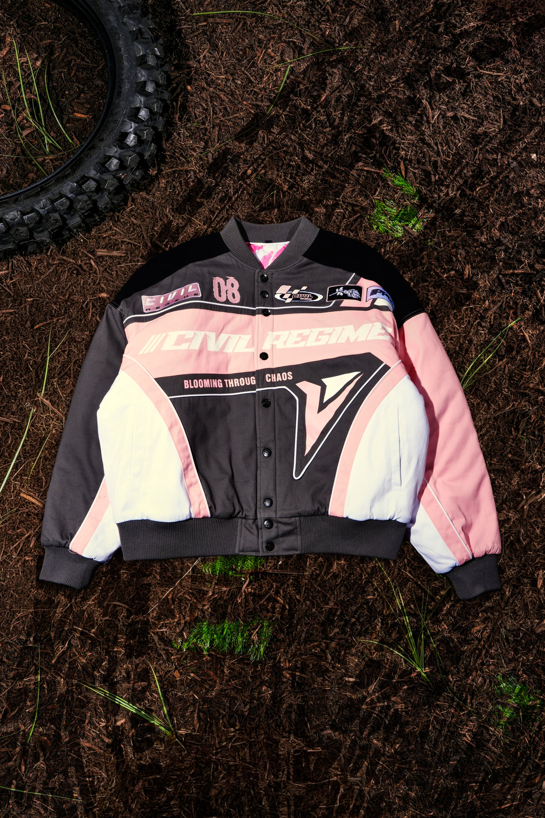 Power Trip MX Womens Reversible Racing Jacket in White/Pink Camo