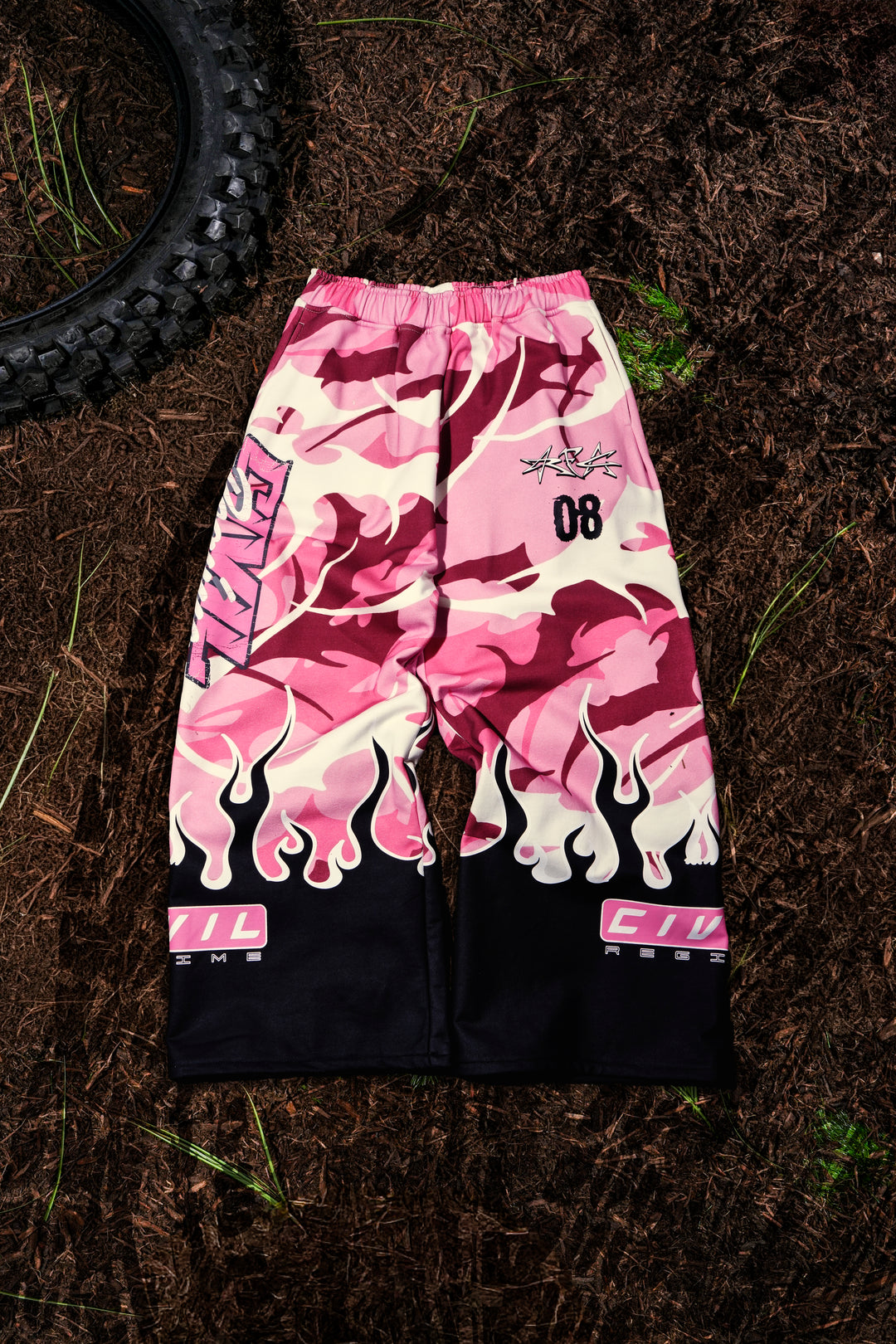 WMX Dept Civil Eternal Wide Leg Fleece Pants in Baby Pink Camo