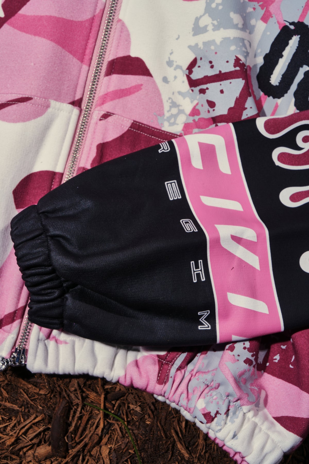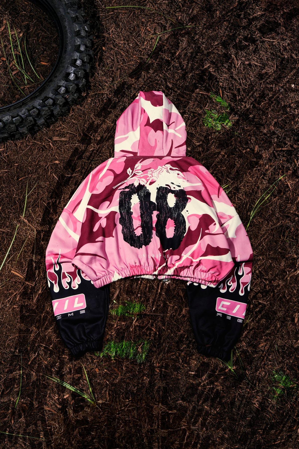 WMX Dept Ultra Crop Zip Up Hoodie in Baby Pink Camo