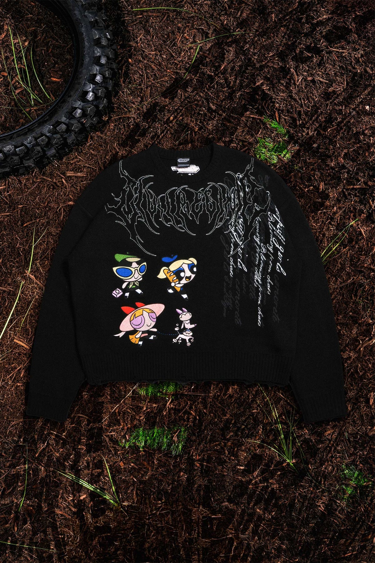 Girl's Trip Cable Distressed Knit Sweater in Black
