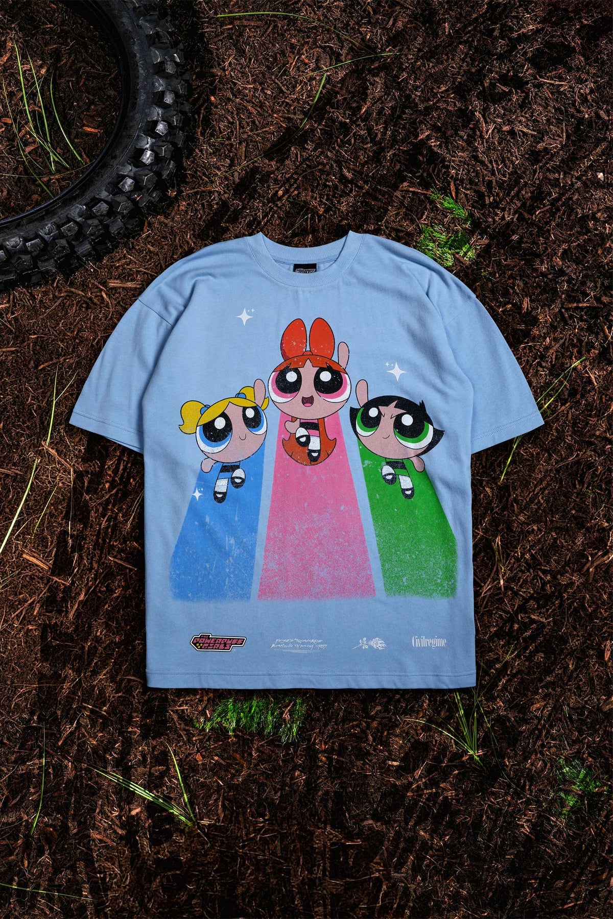 Powerpuff Girls Run The World American Classic Oversized Tee in Pale Blue