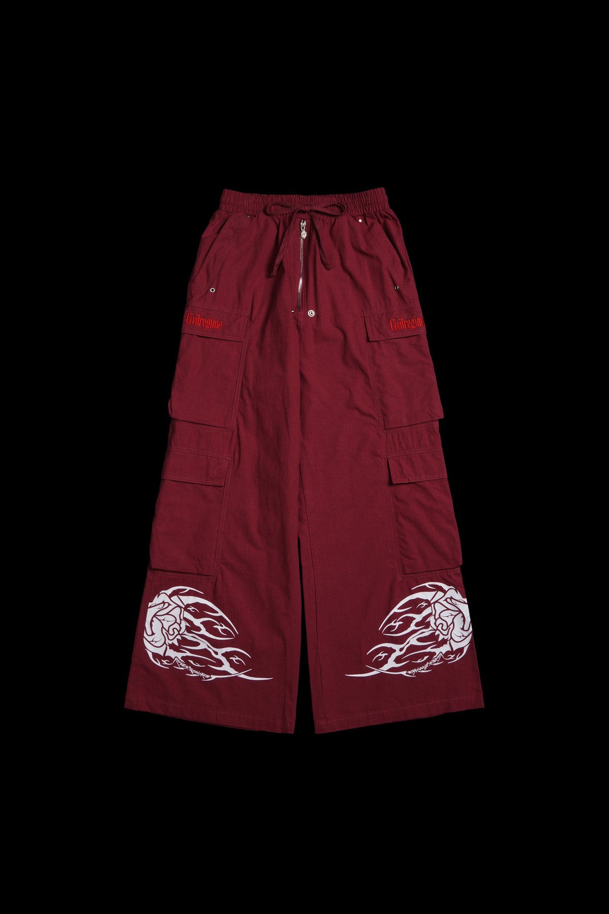 Fallen Rose Ultra Wide Leg Cargo Pants in Burgundy