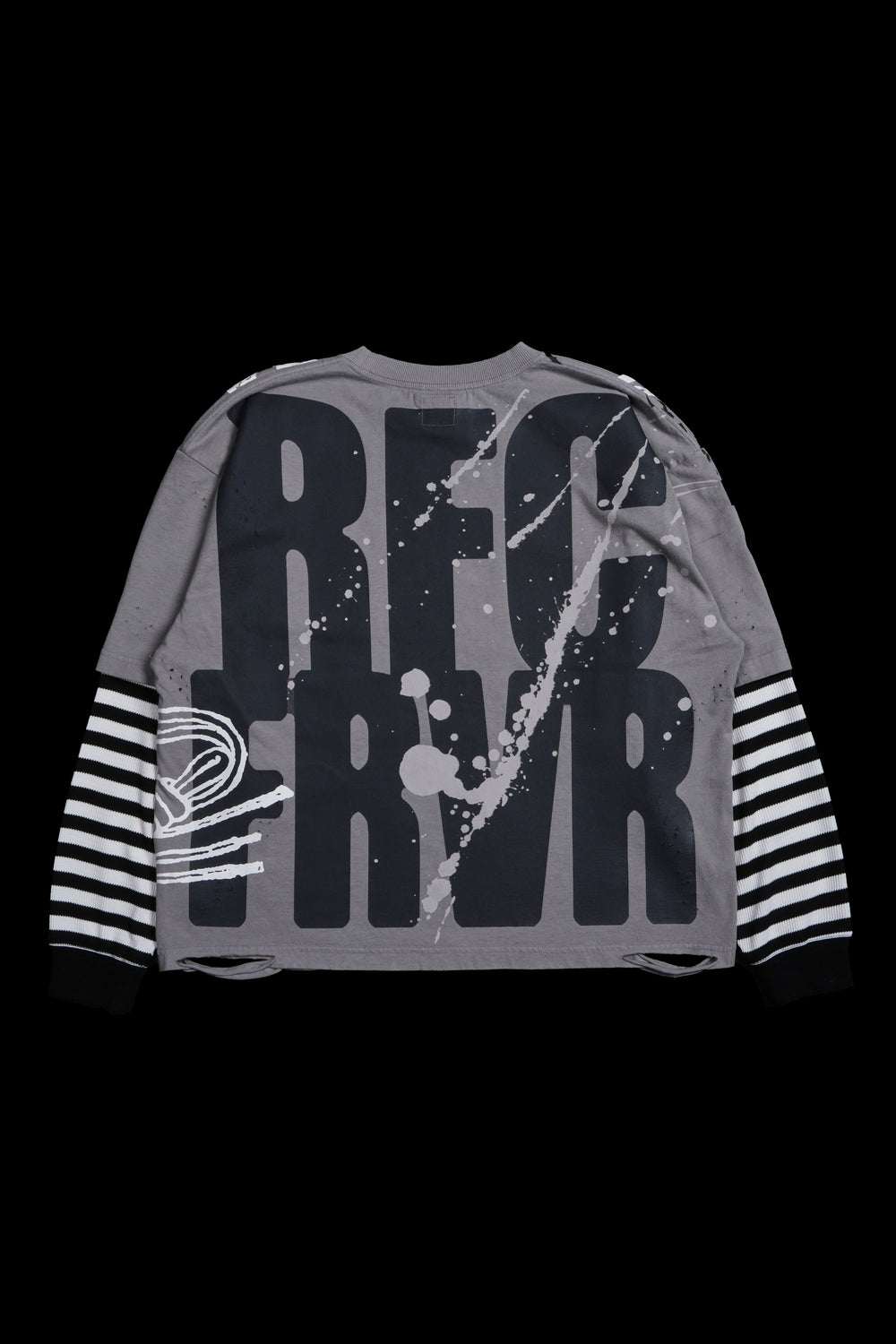 Music On, World Off Distressed Twofer in Ash Gray Stripe Black/Gray