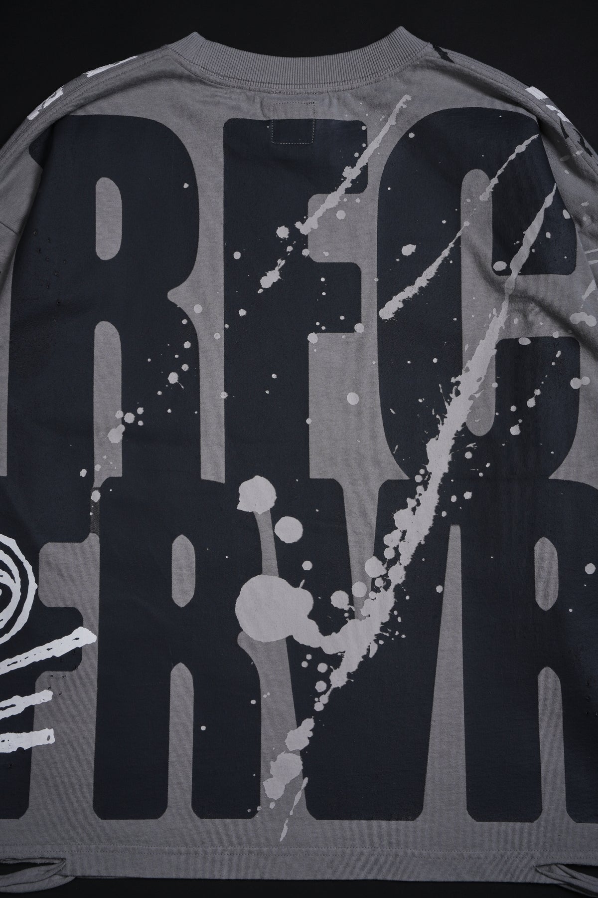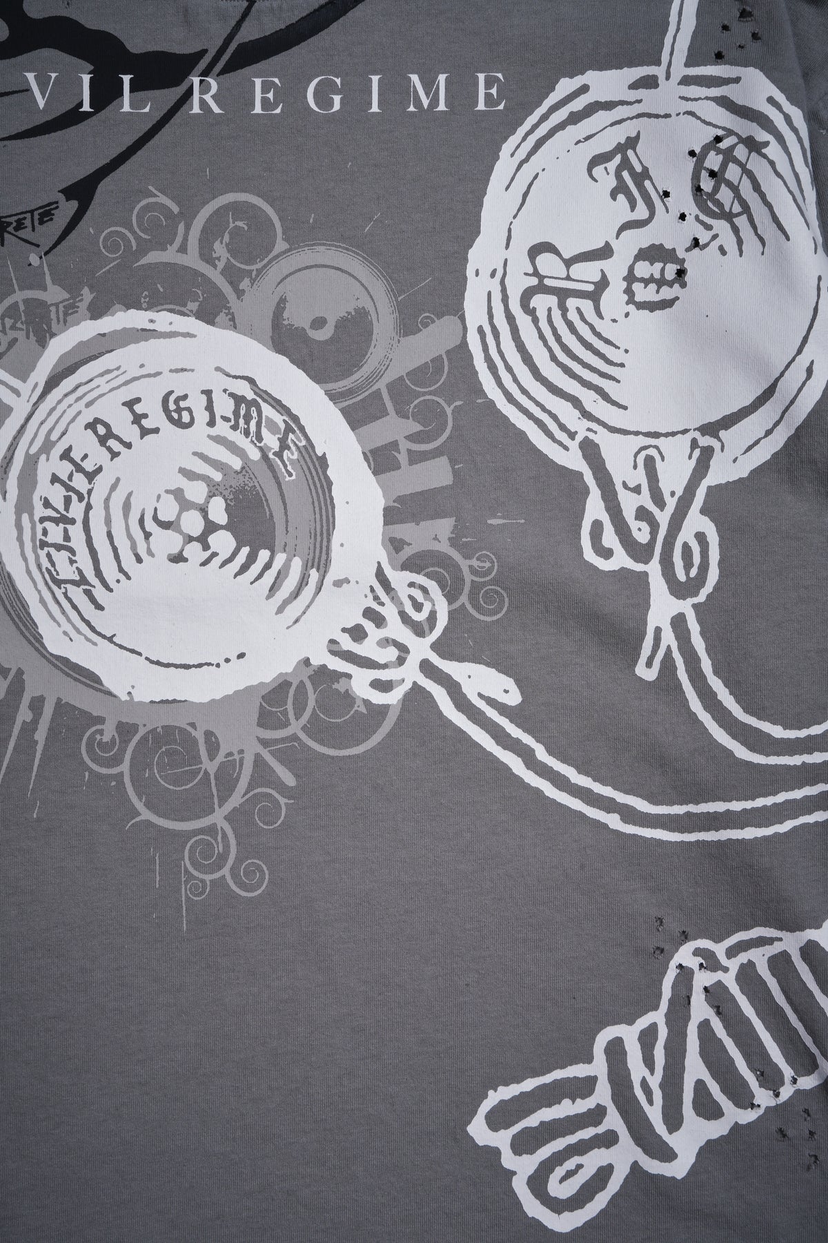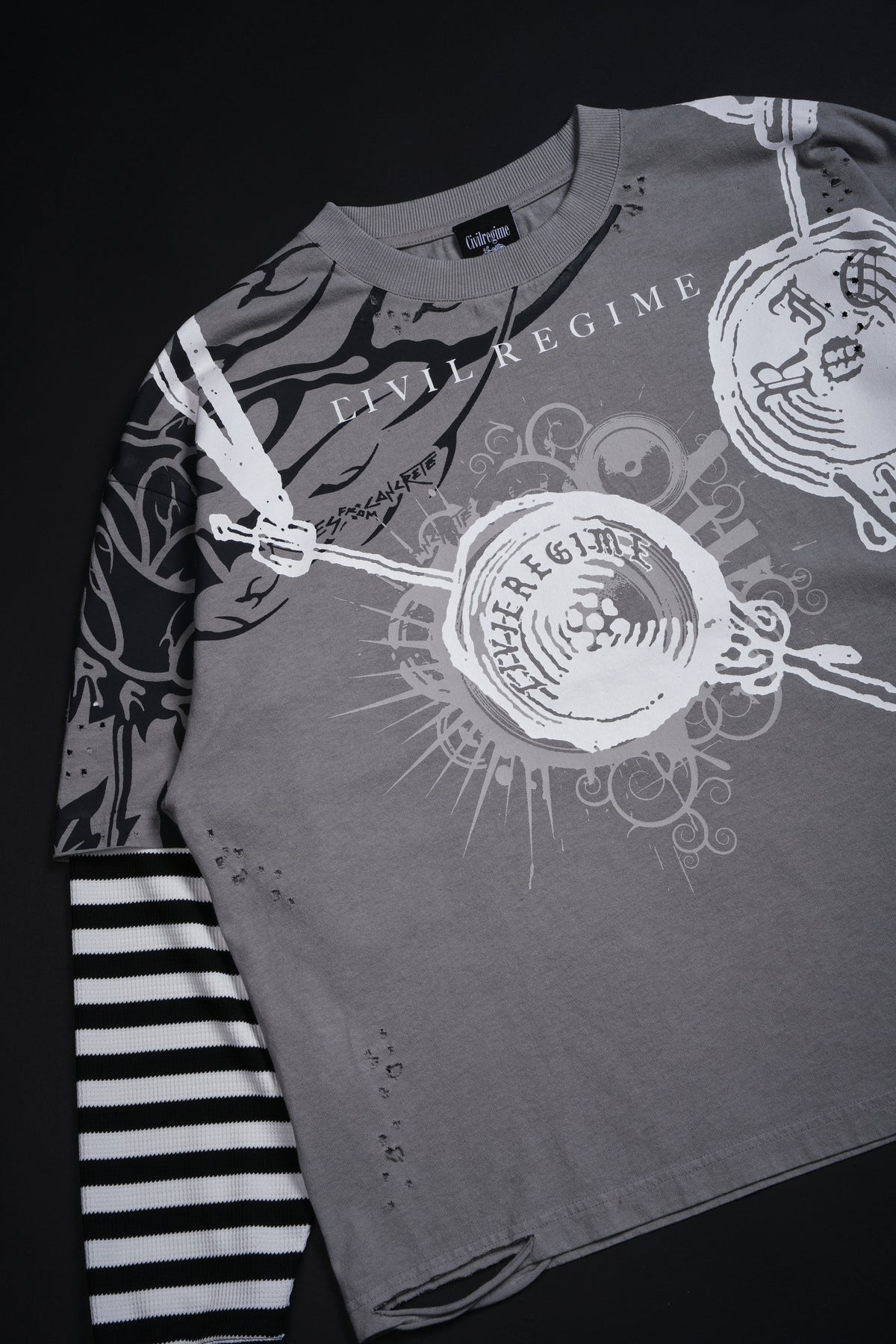 Music On, World Off Distressed Twofer in Ash Gray Stripe Black/Gray