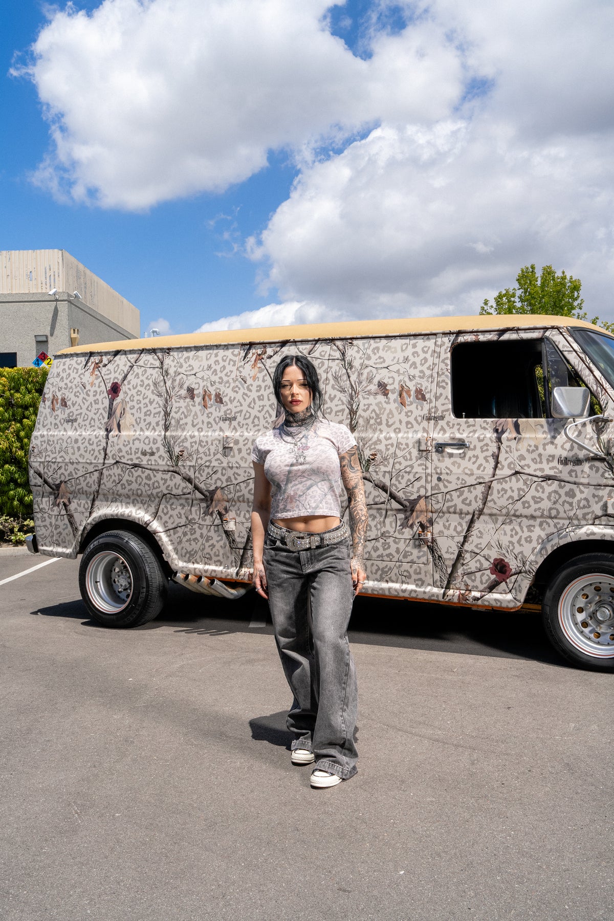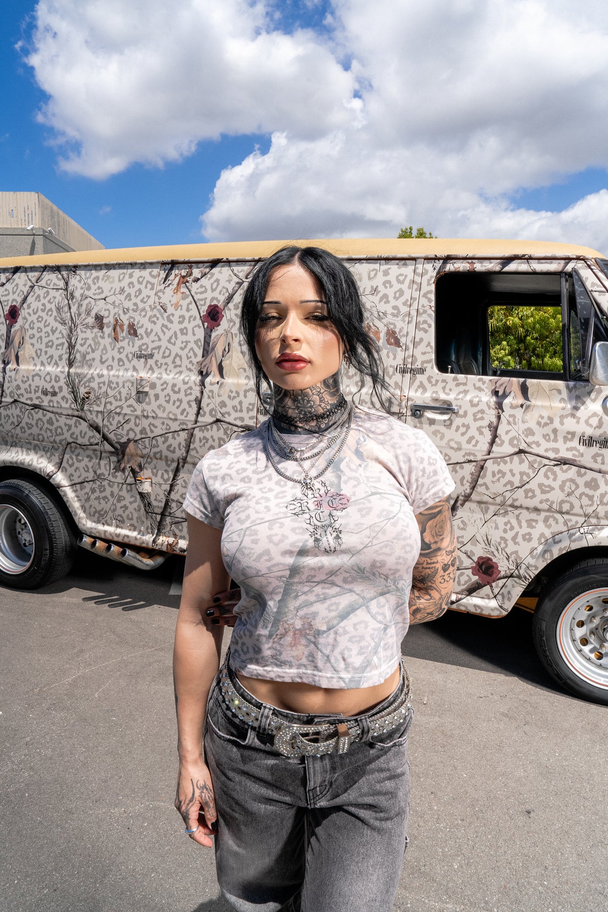 Concrete Sin Baby Tee in Sun Wash Real Leopard Camo