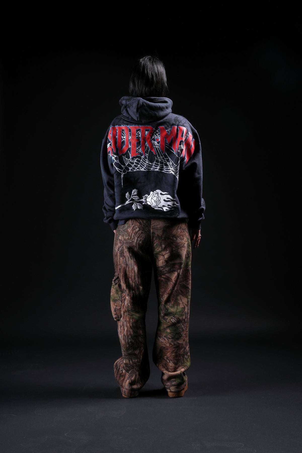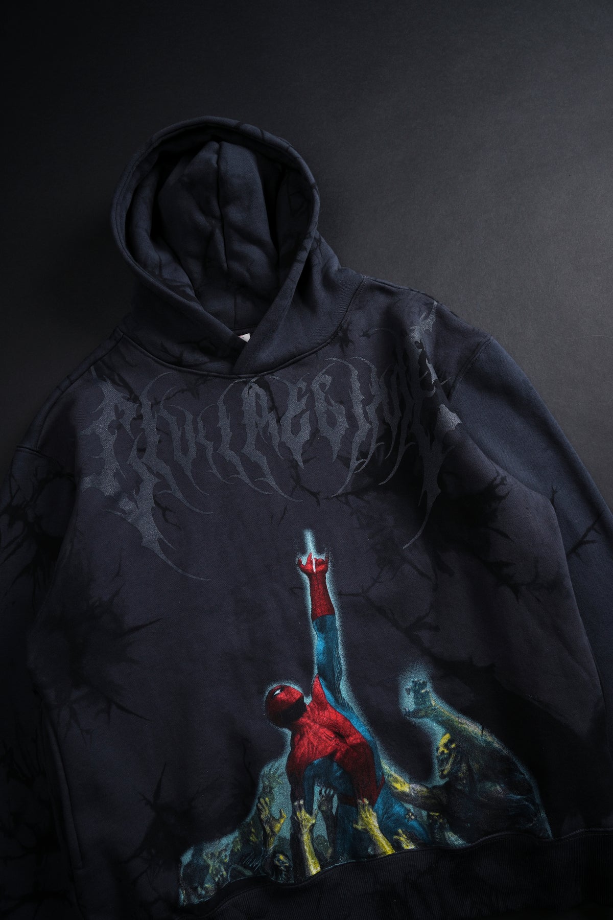 Zombie Spiderman Chaos Hoodie in Noir Wash