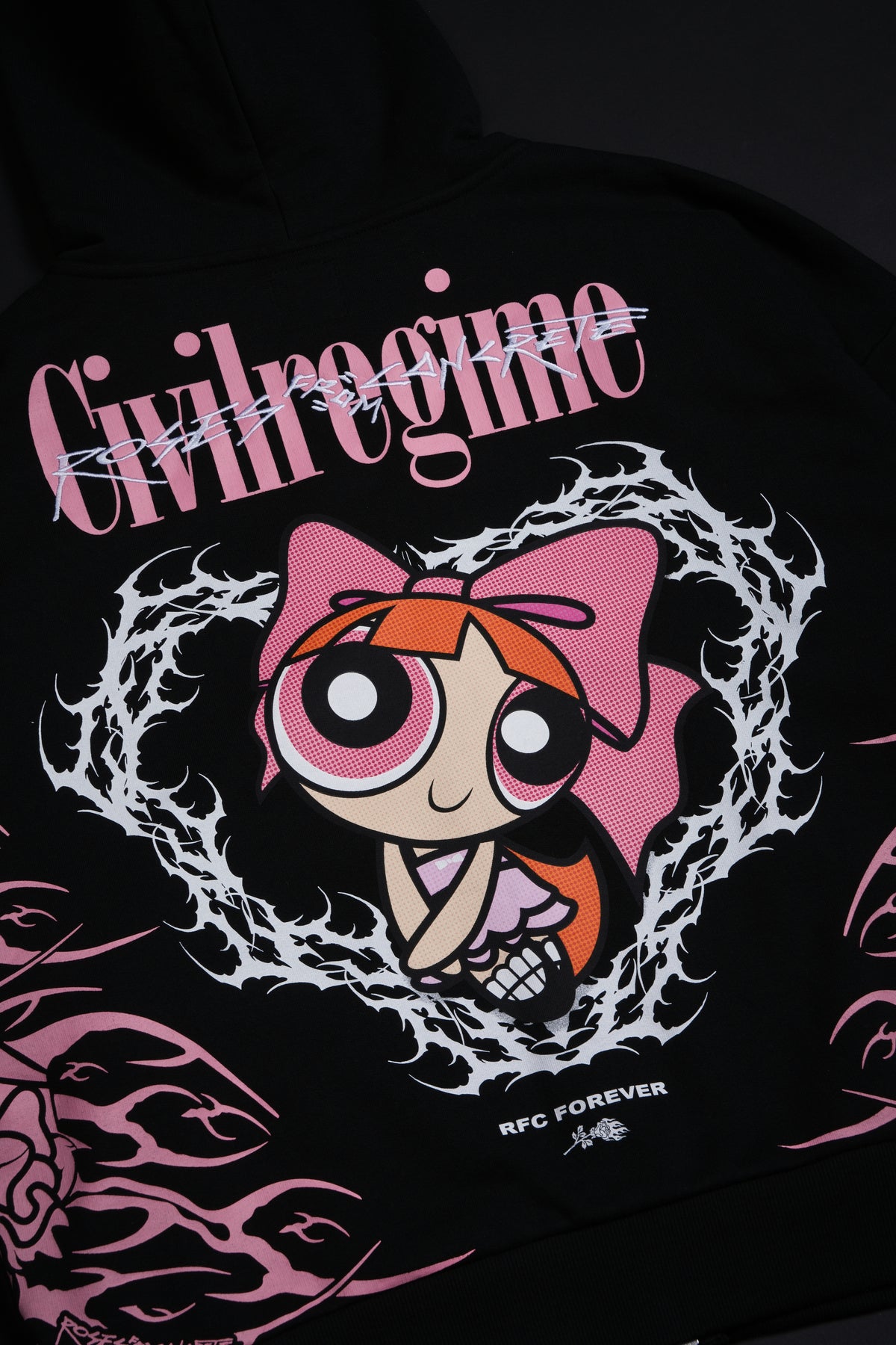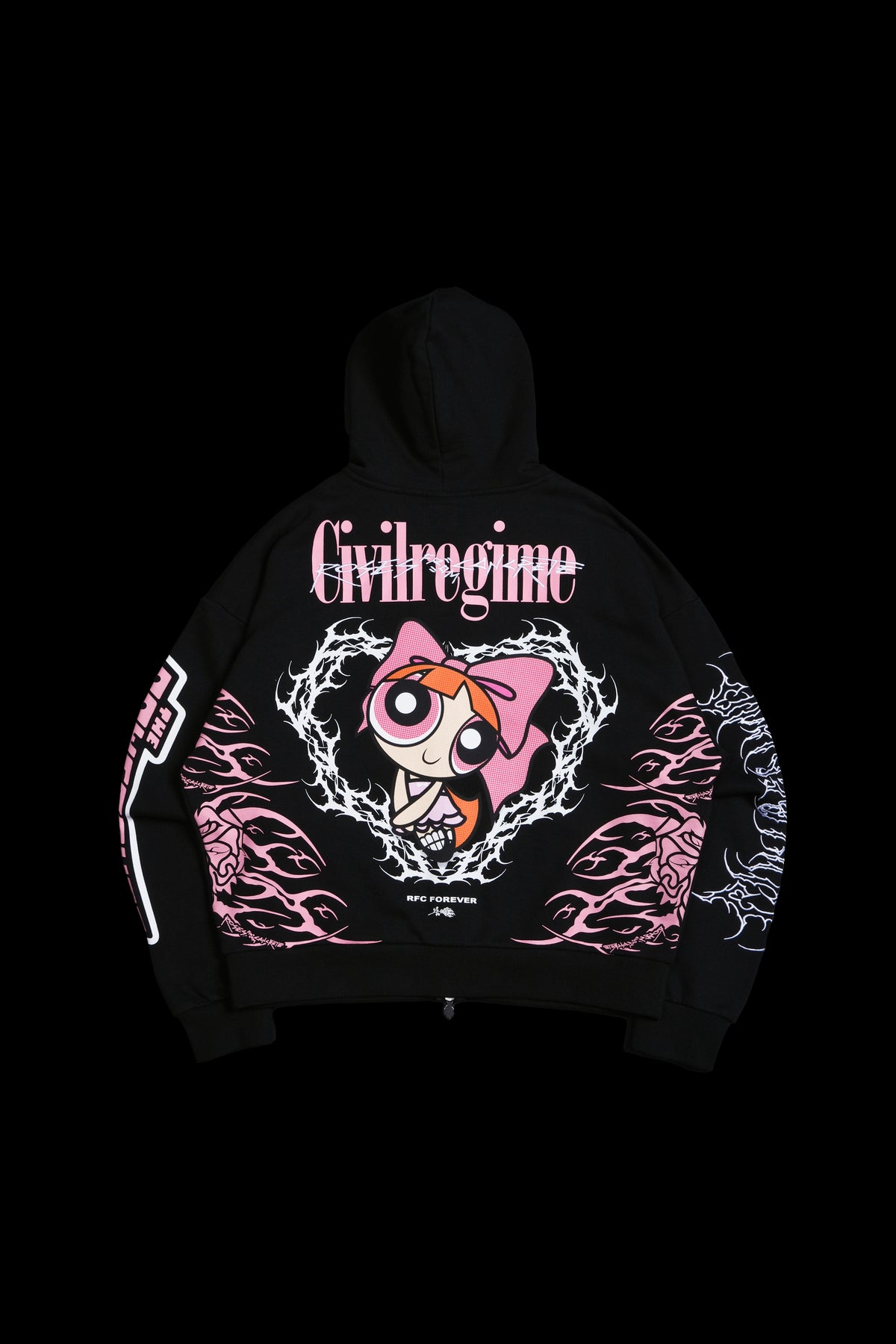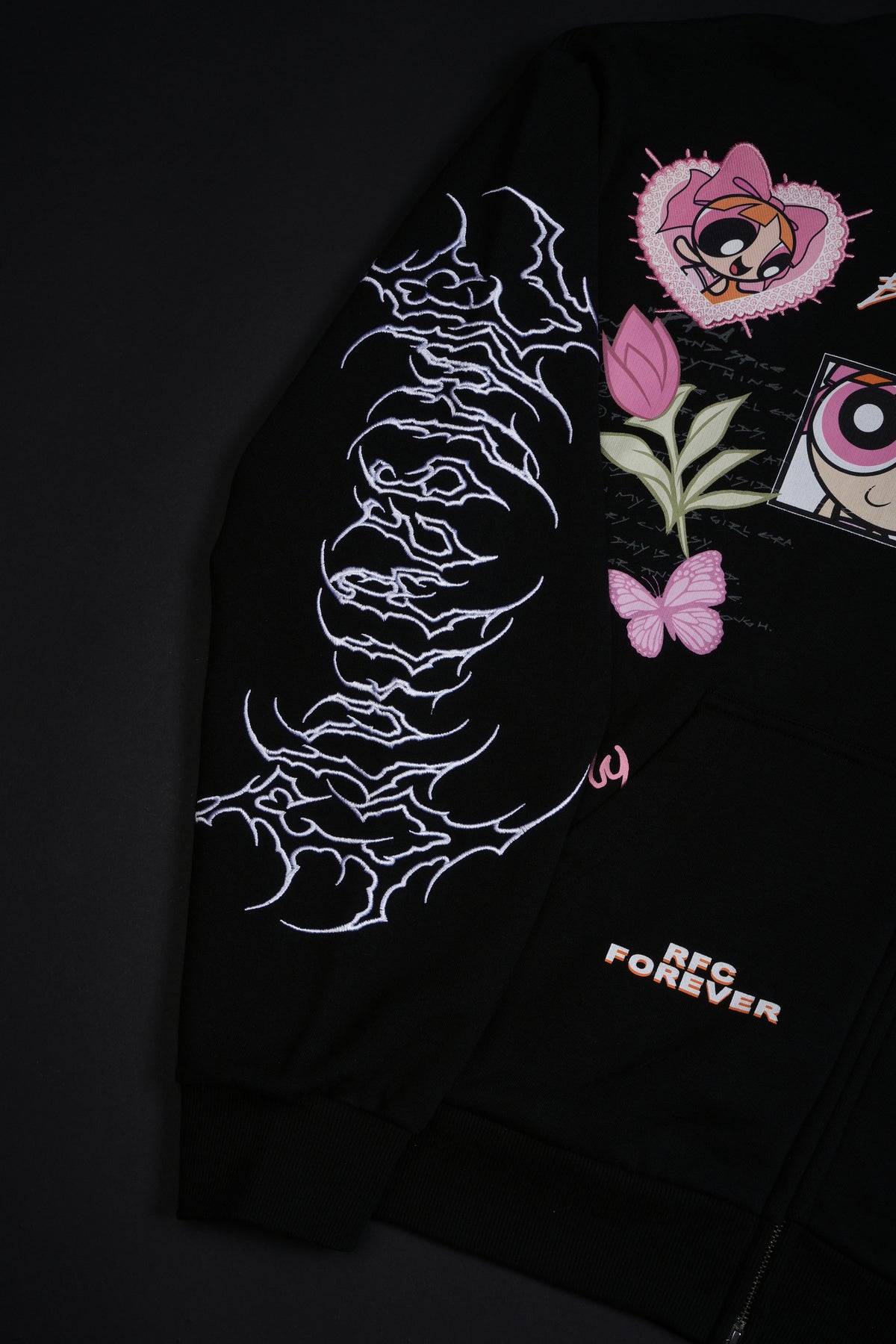 Blossom's Spirit Distressed Zip Up Hoodie in Black